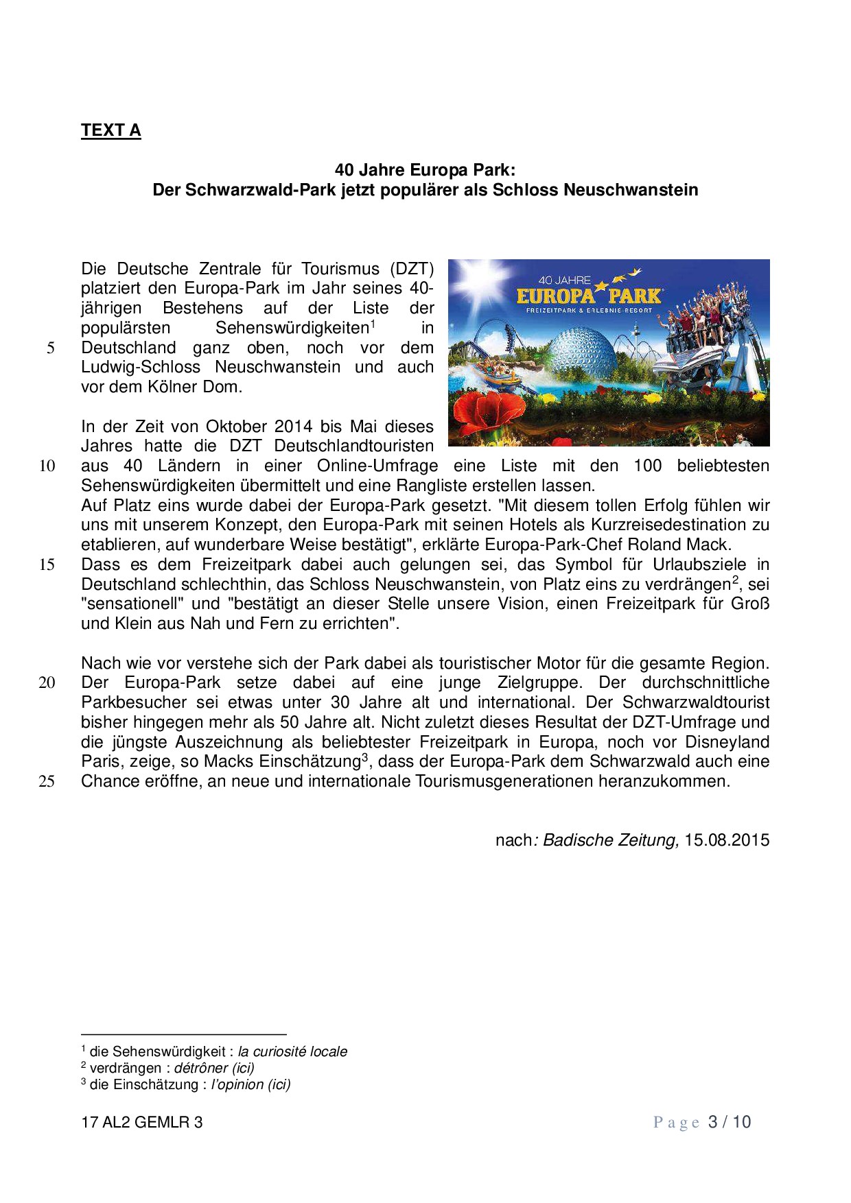 Bac S-ES-L Allemand LV2 Métropole 2017 (Session de remplacement) - Sujet