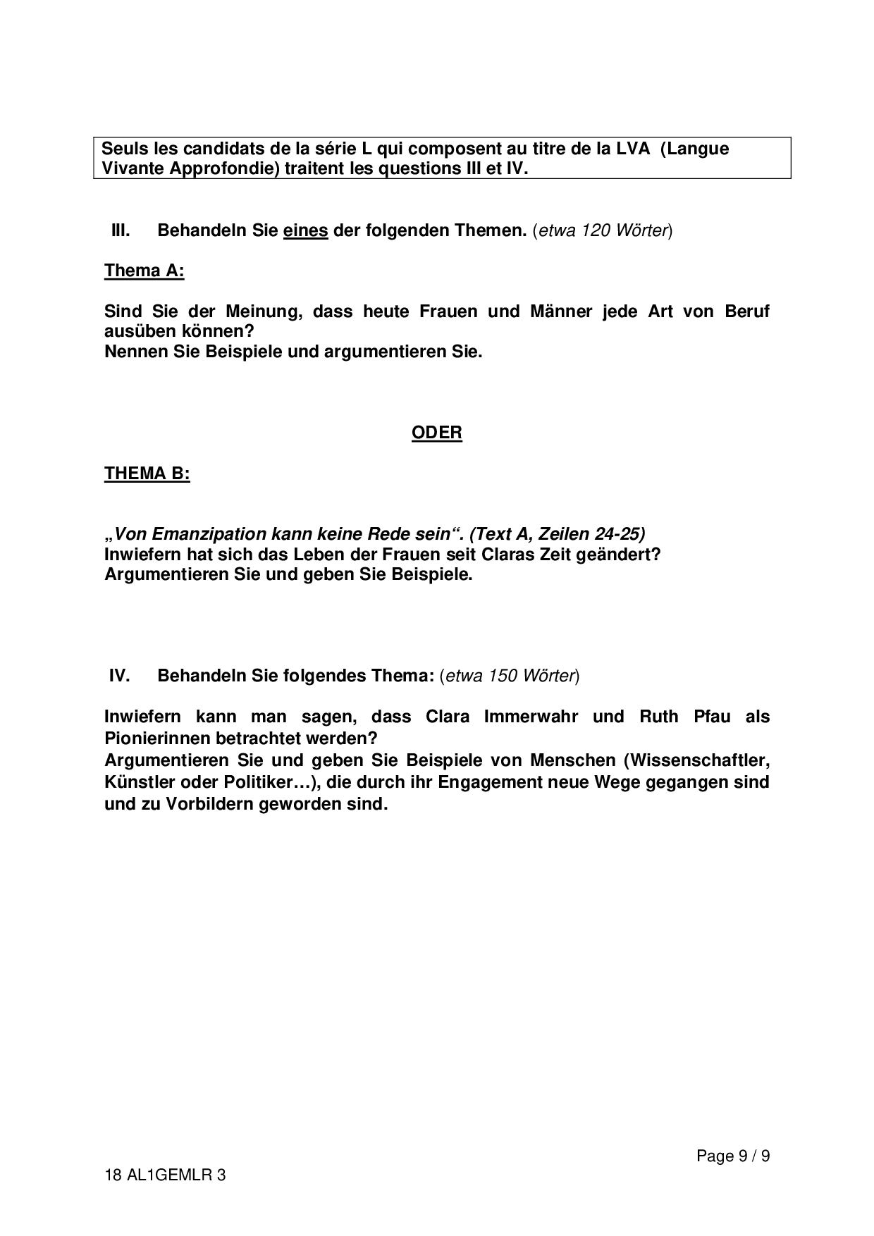 Bac S-ES-L Allemand LV1 Métropole 2018 (Session de remplacement) - Sujet