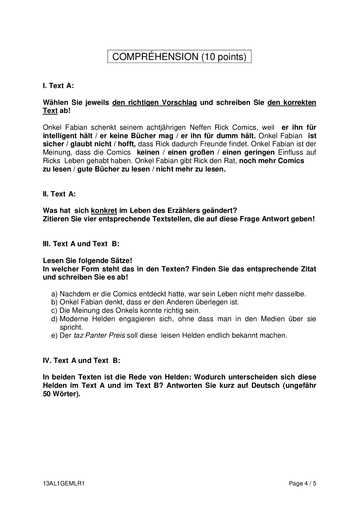 Allemand: Annales Bac L