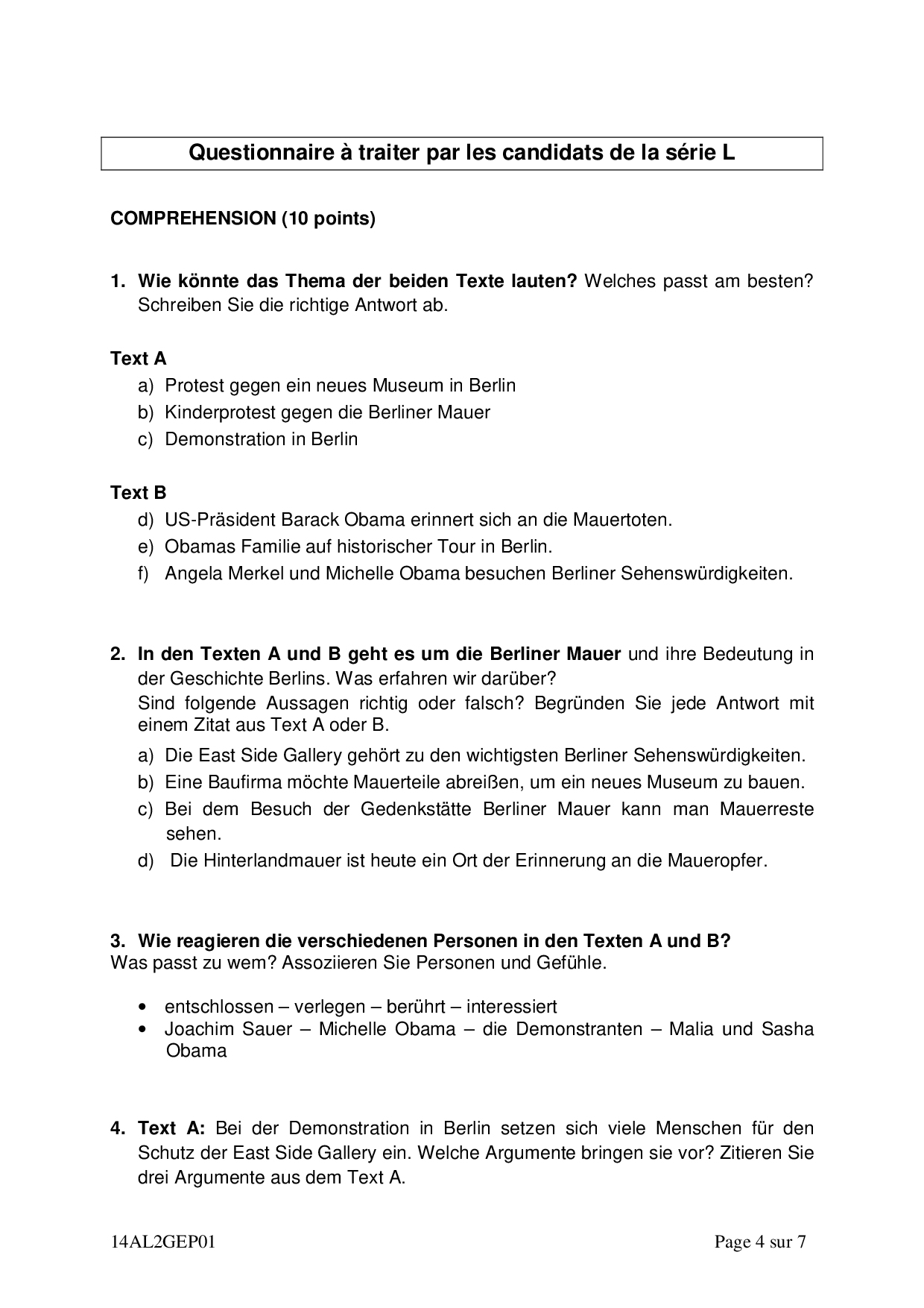 Allemand: Annales Bac L