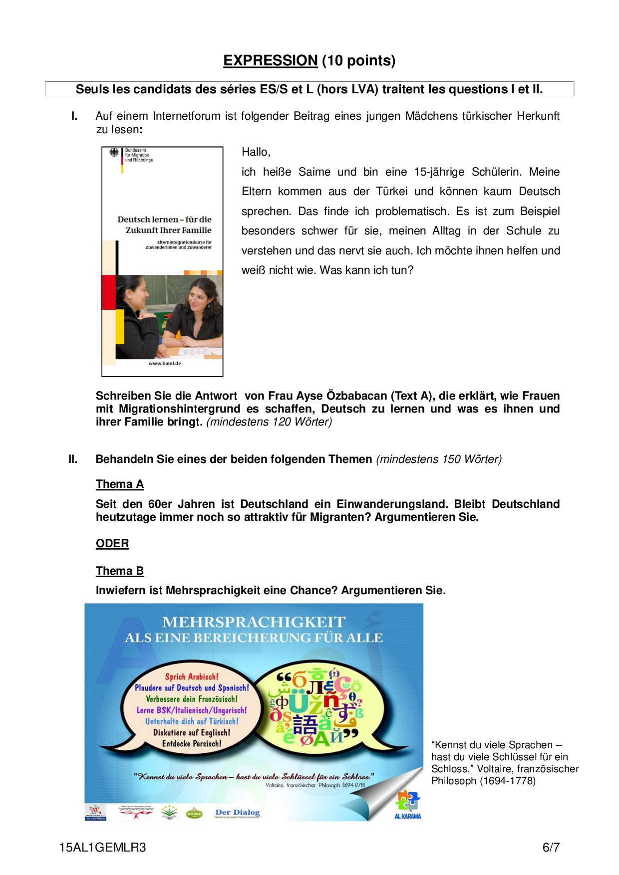 Bac S-ES-L Allemand LV1 Métropole 2015 (Session de remplacement) - Sujet