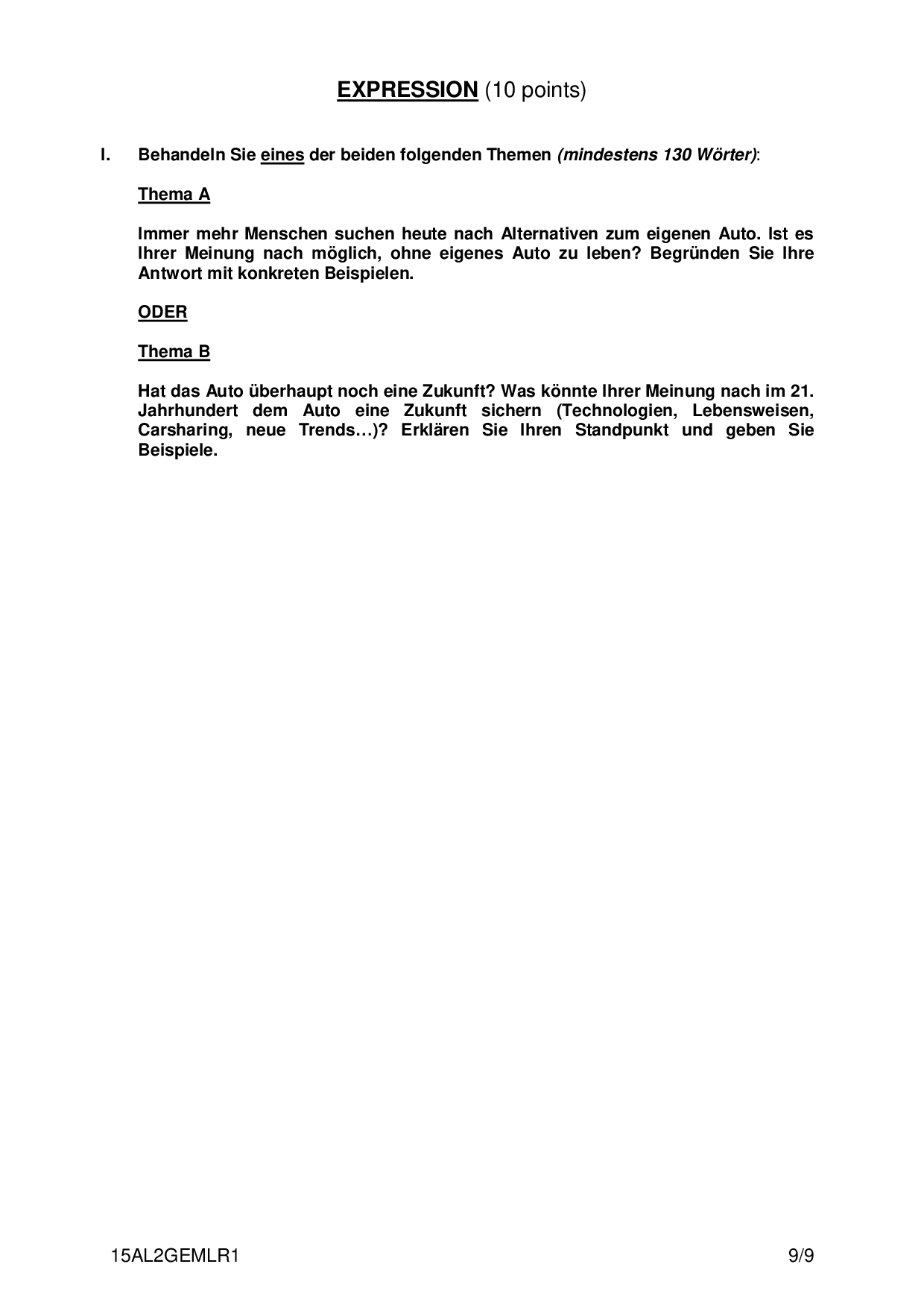 Bac S-ES-L Allemand LV2 Métropole 2015 - Sujet