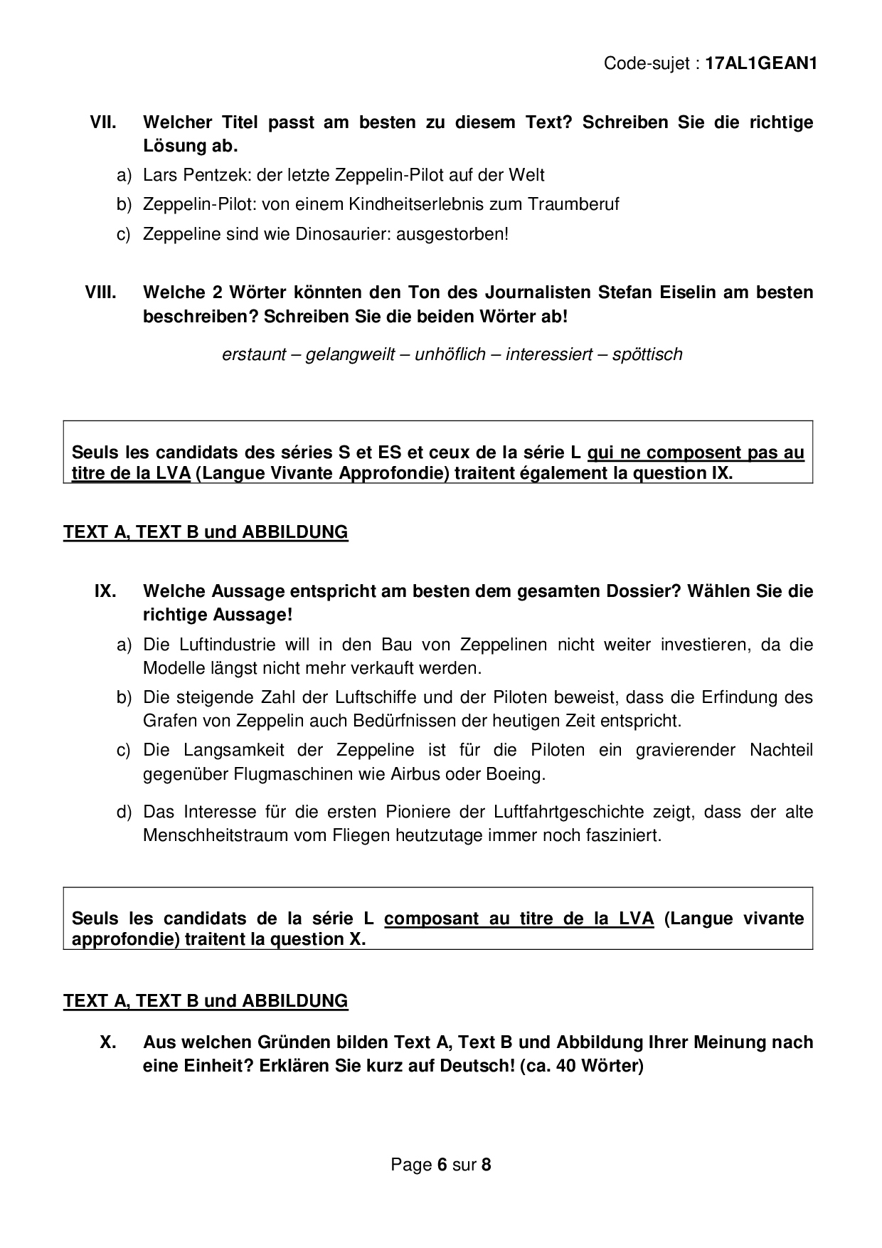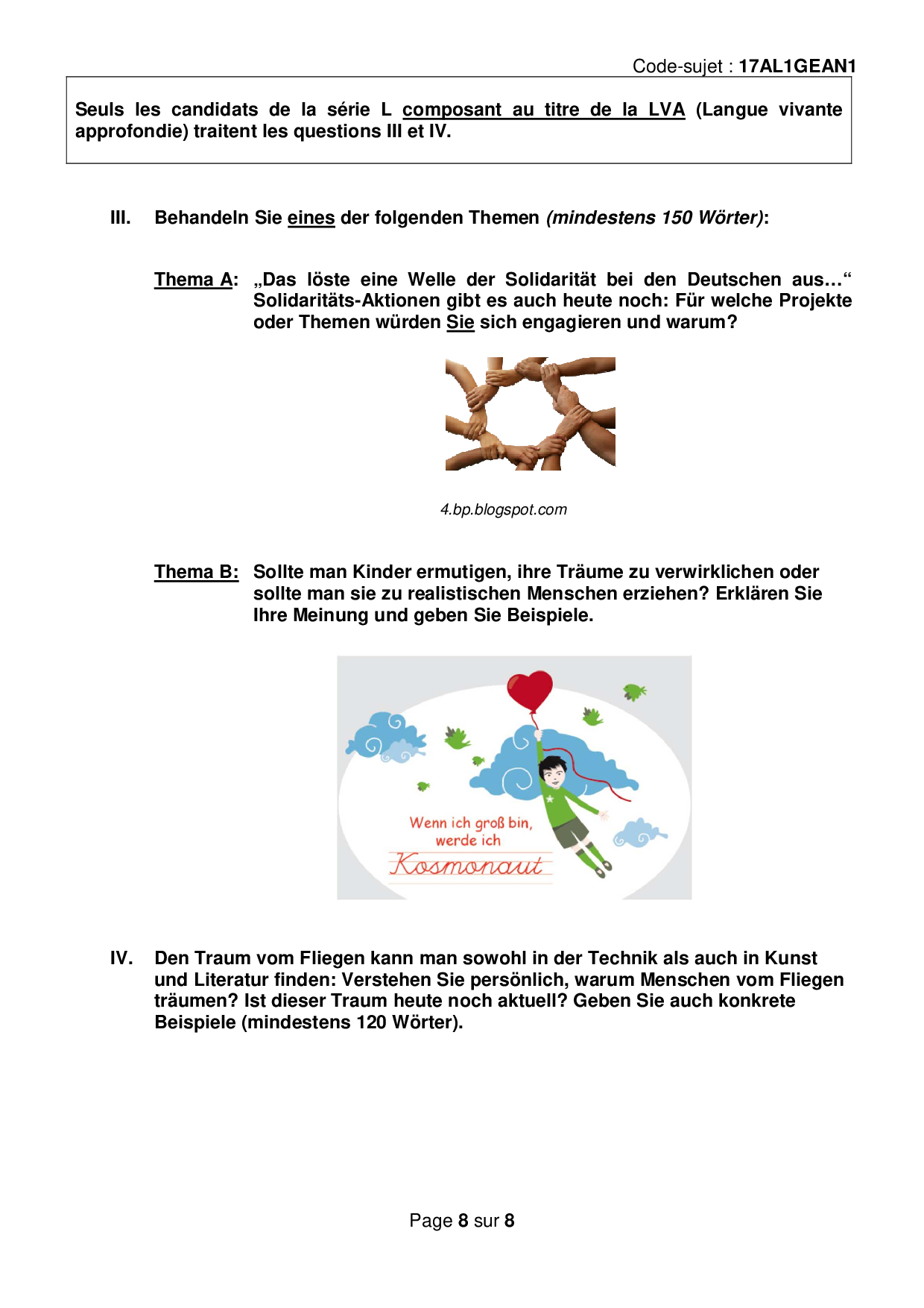 Bac S-ES-L Allemand LV1 Amérique du Nord 2017 - Sujet