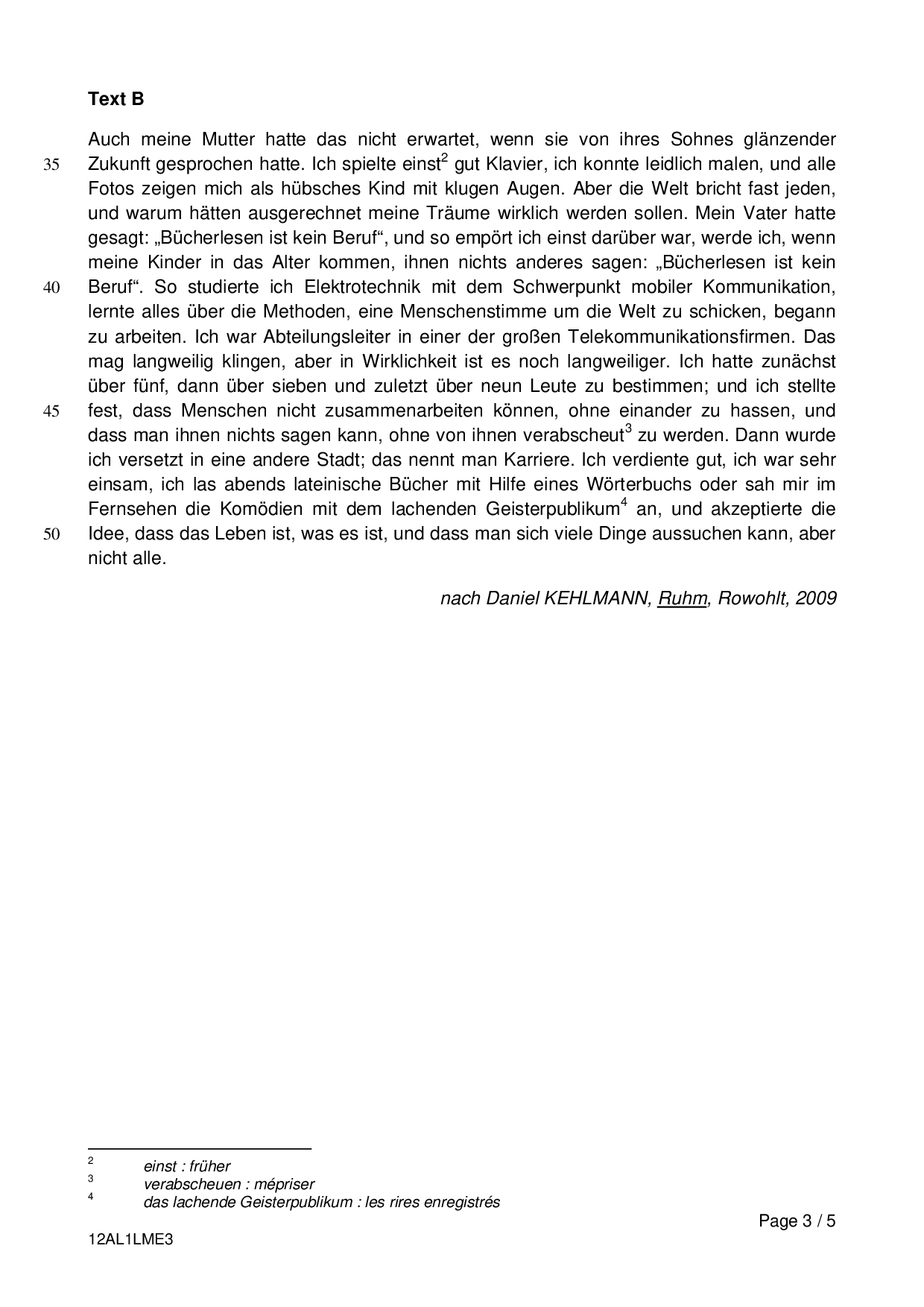 Bac L Allemand LV1 Métropole 2012 (Session de remplacement) - Sujet