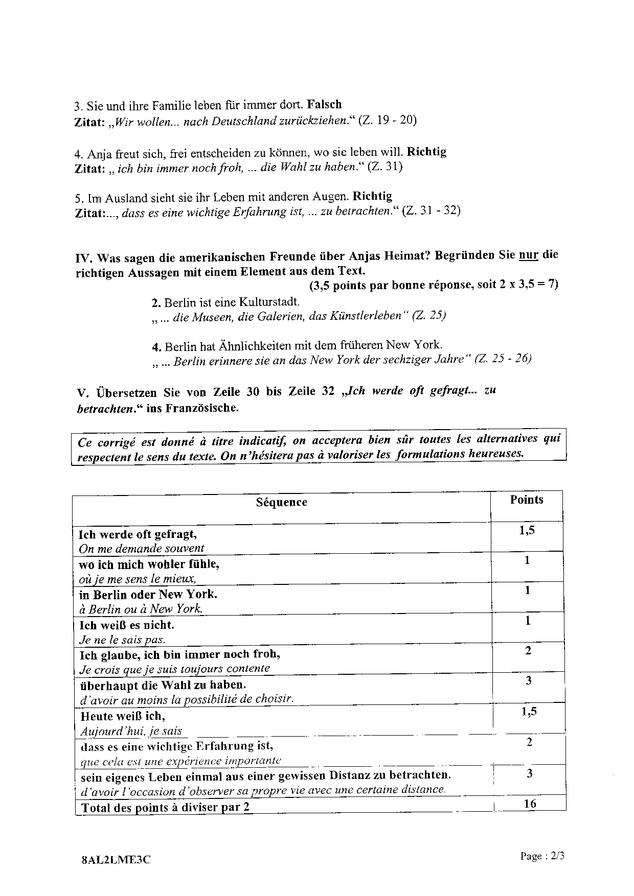 Bac L Allemand LV2 Métropole 2008 (Session de remplacement) - Corrigé