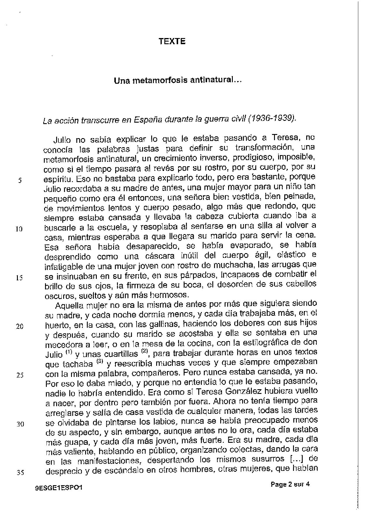 Bac S-ES Espagnol LV1 Polynésie 2009 - Sujet