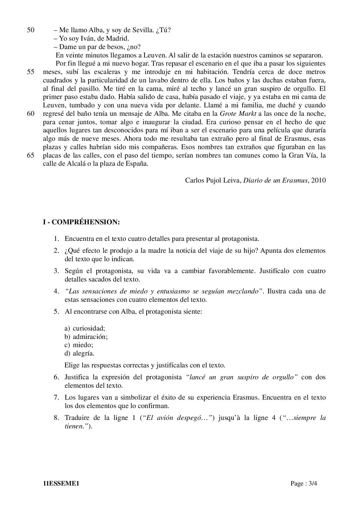 Bac S-ES Espagnol LV1 Métropole 2011 - Sujet