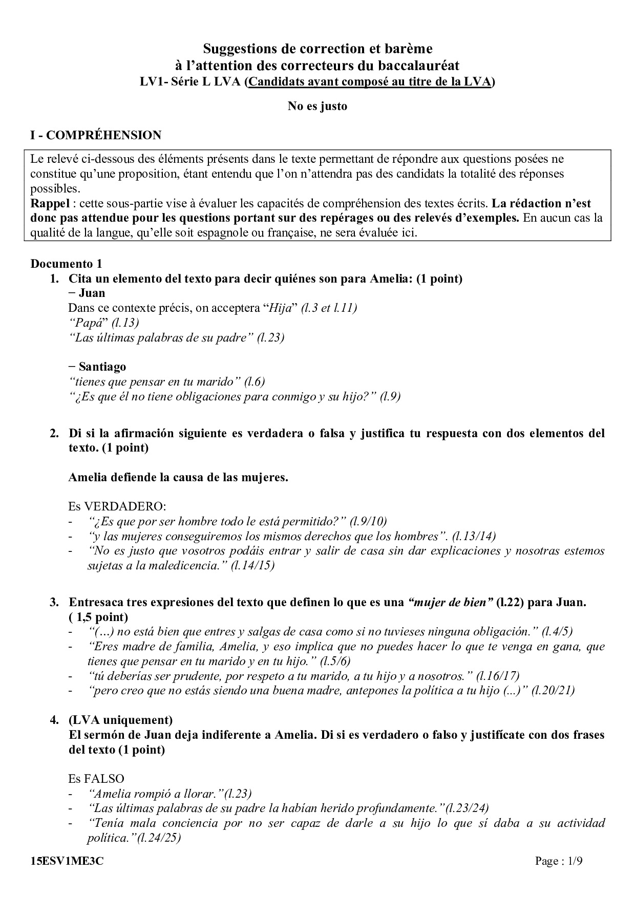 Bac S-ES-L Espagnol LV1 Métropole 2015 (Session de remplacement) - Corrigé
