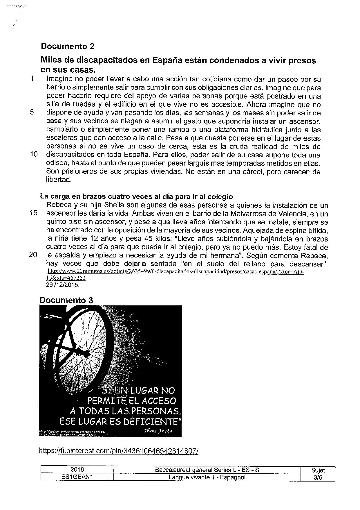 Bac S-ES-L Espagnol LV1 Amérique du Nord 2018 - Sujet
