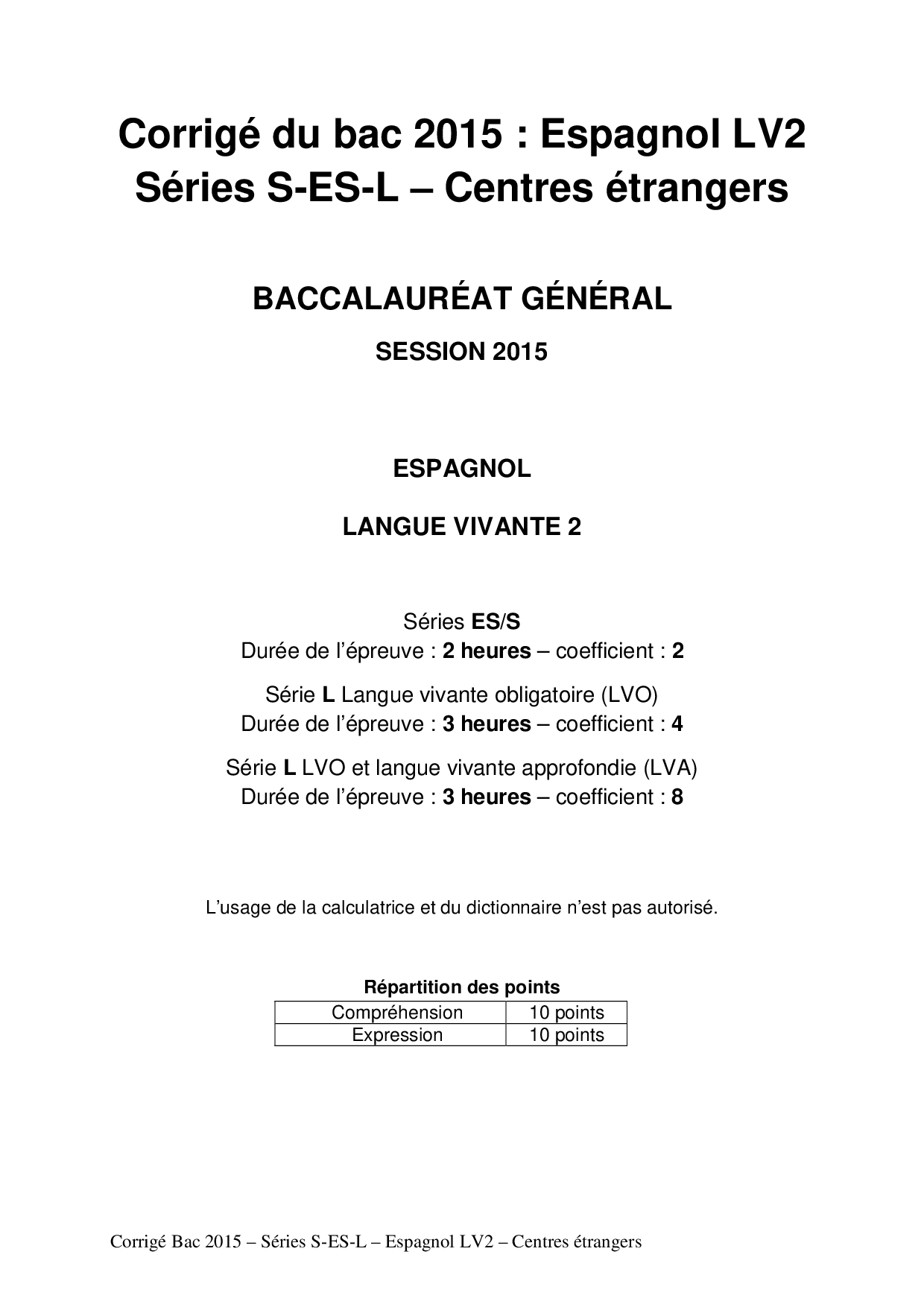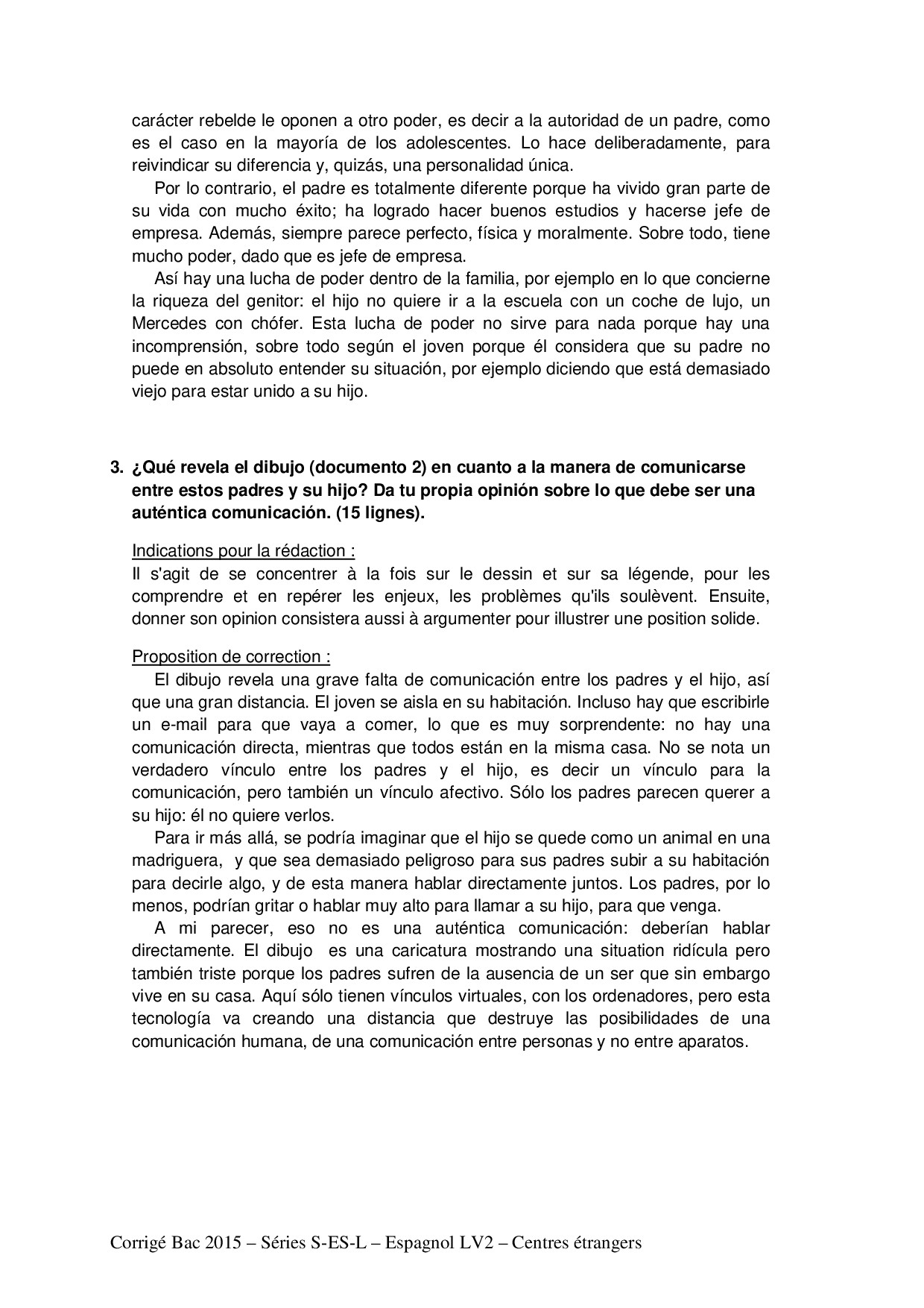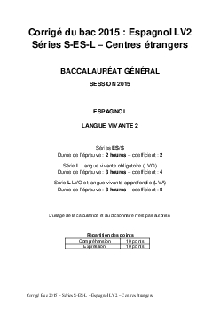 Bac S-ES-L Espagnol LV2 Centres Etrangers Afrique 2015 - Corrigé