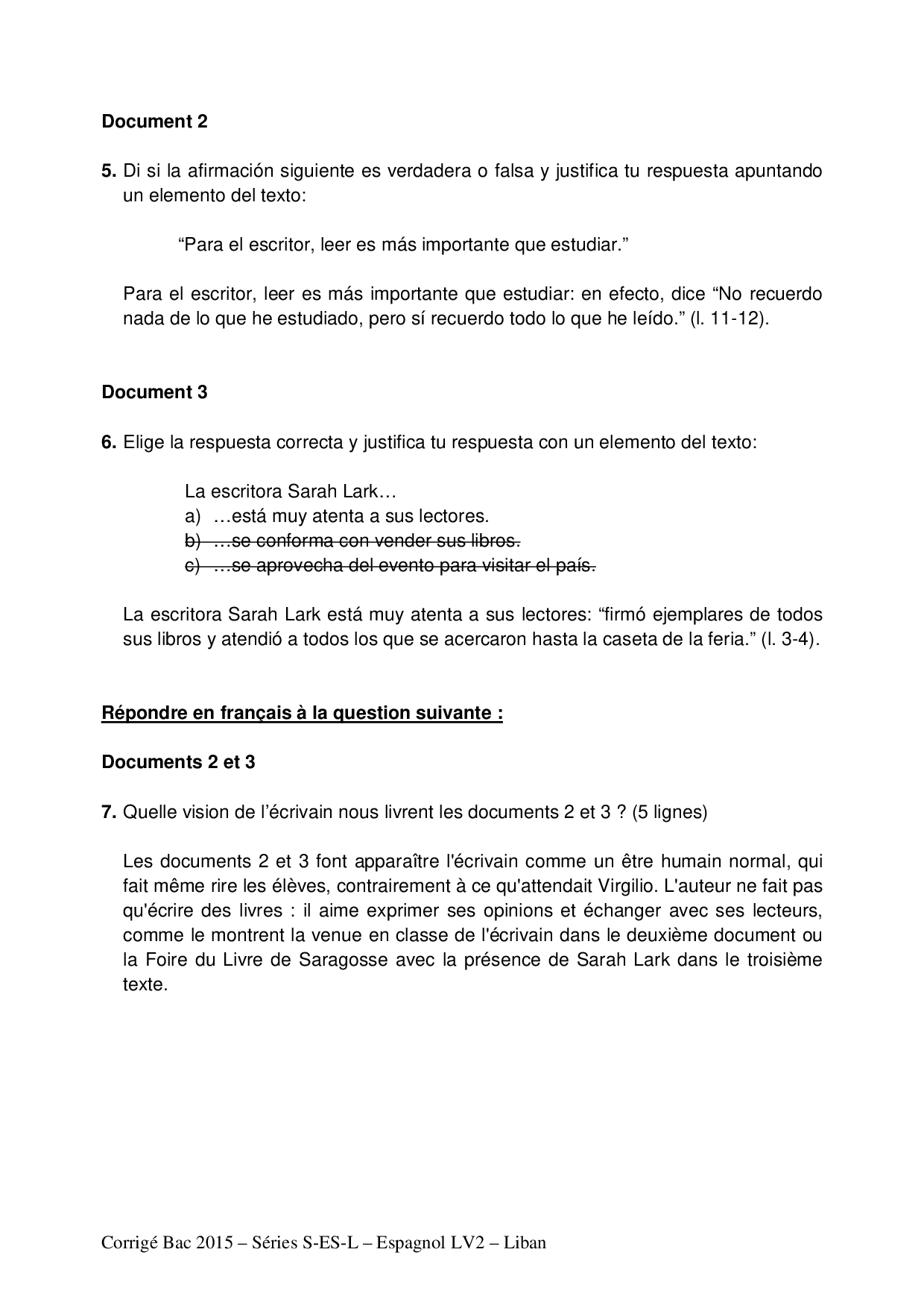 Bac S-ES-L Espagnol LV2 Liban 2015 - Corrigé