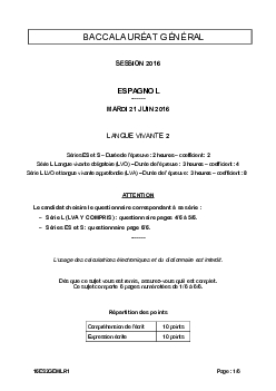 Bac S-ES-L Espagnol LV2 Métropole 2016 - Sujet