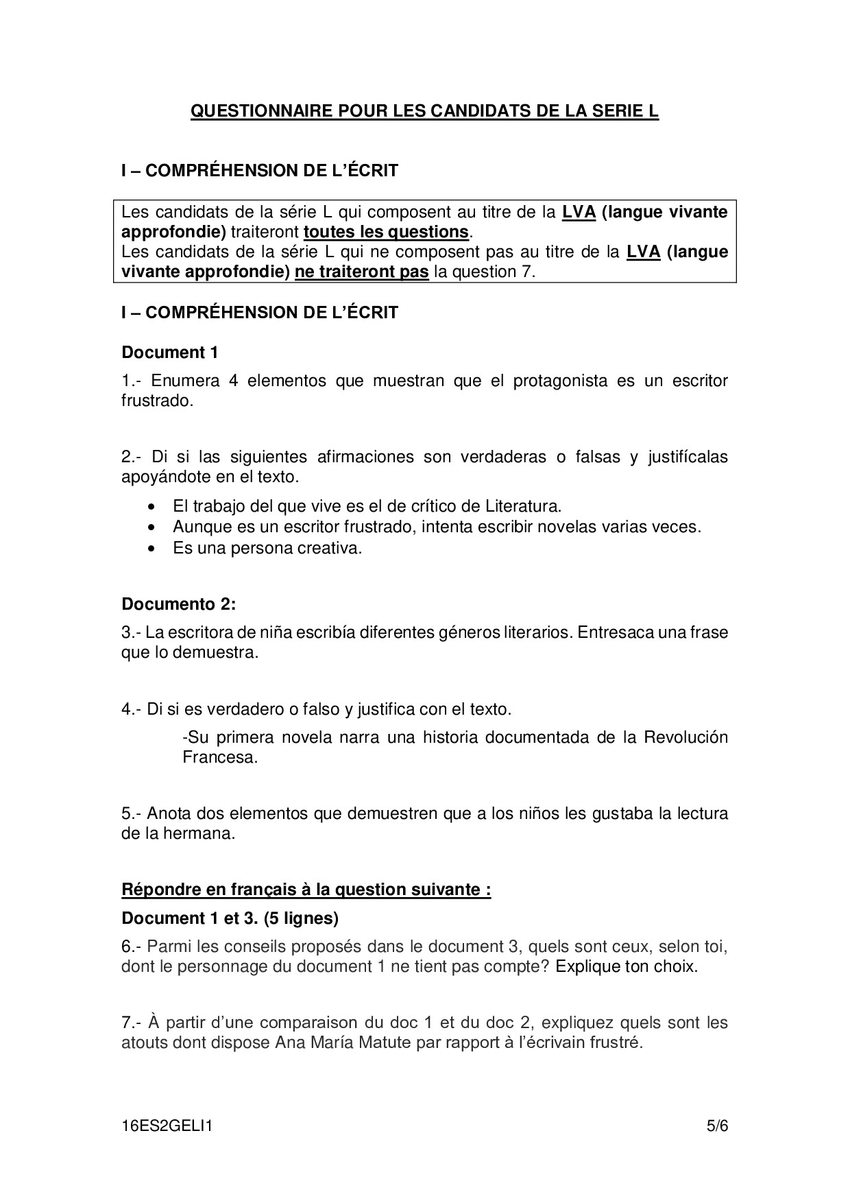 Bac S-ES-L Espagnol LV2 Liban 2016 - Sujet