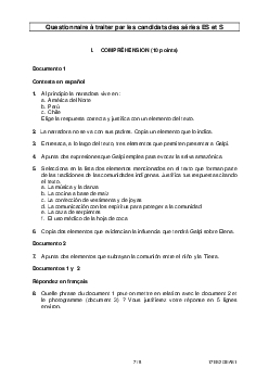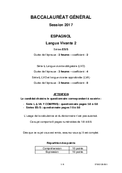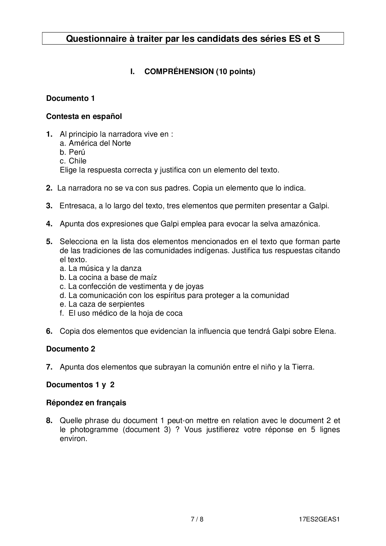 Bac S-ES-L Espagnol LV2 Amérique du Sud 2017 - Sujet