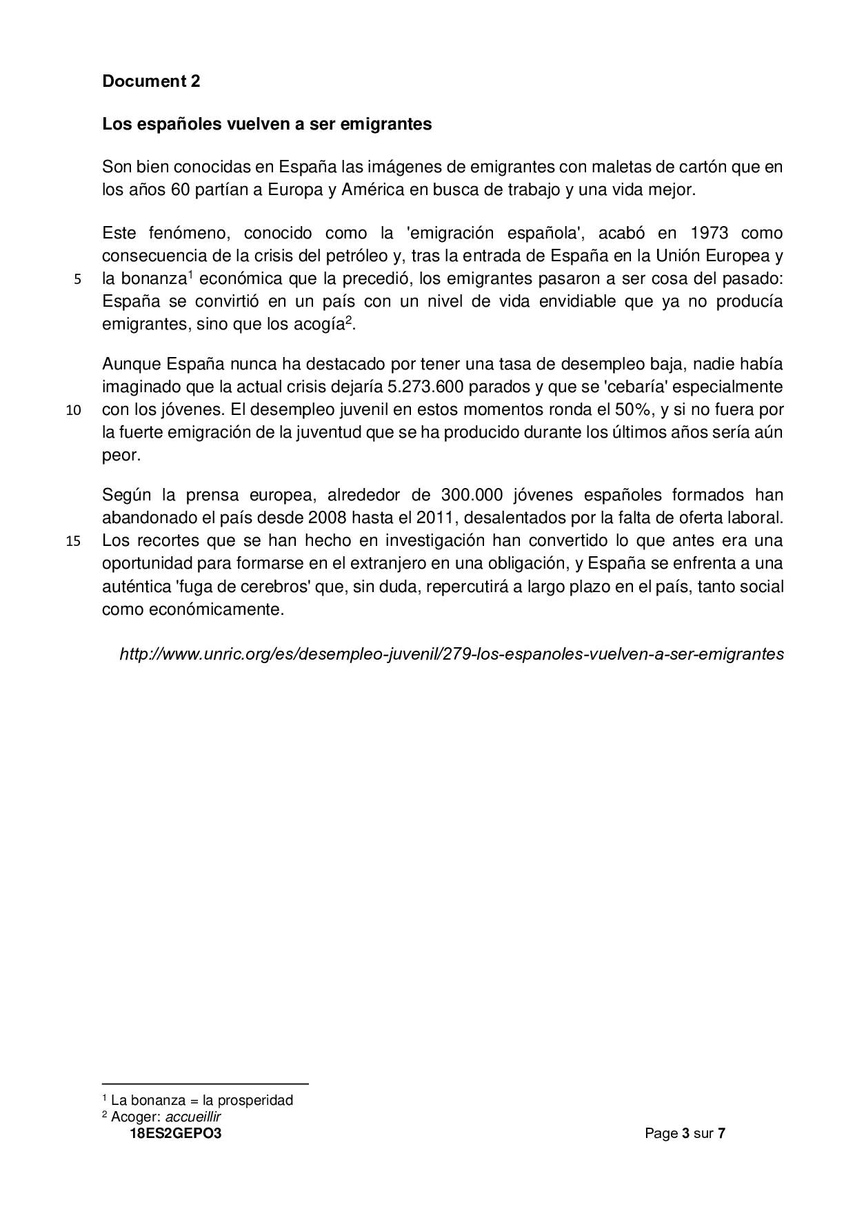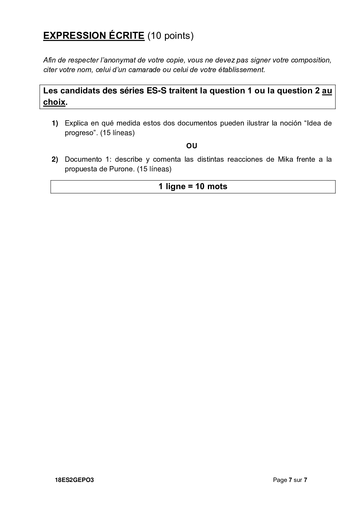 Bac S-ES-L Espagnol LV2 Polynésie 2018 (Session de remplacement) - Sujet
