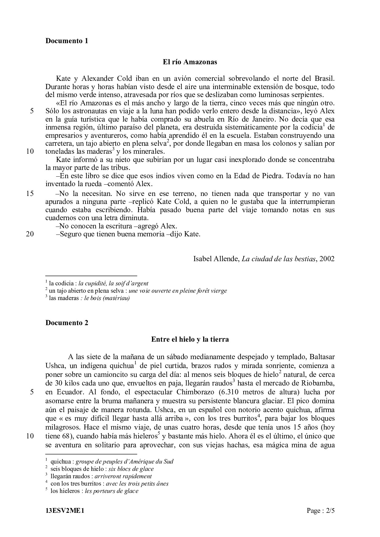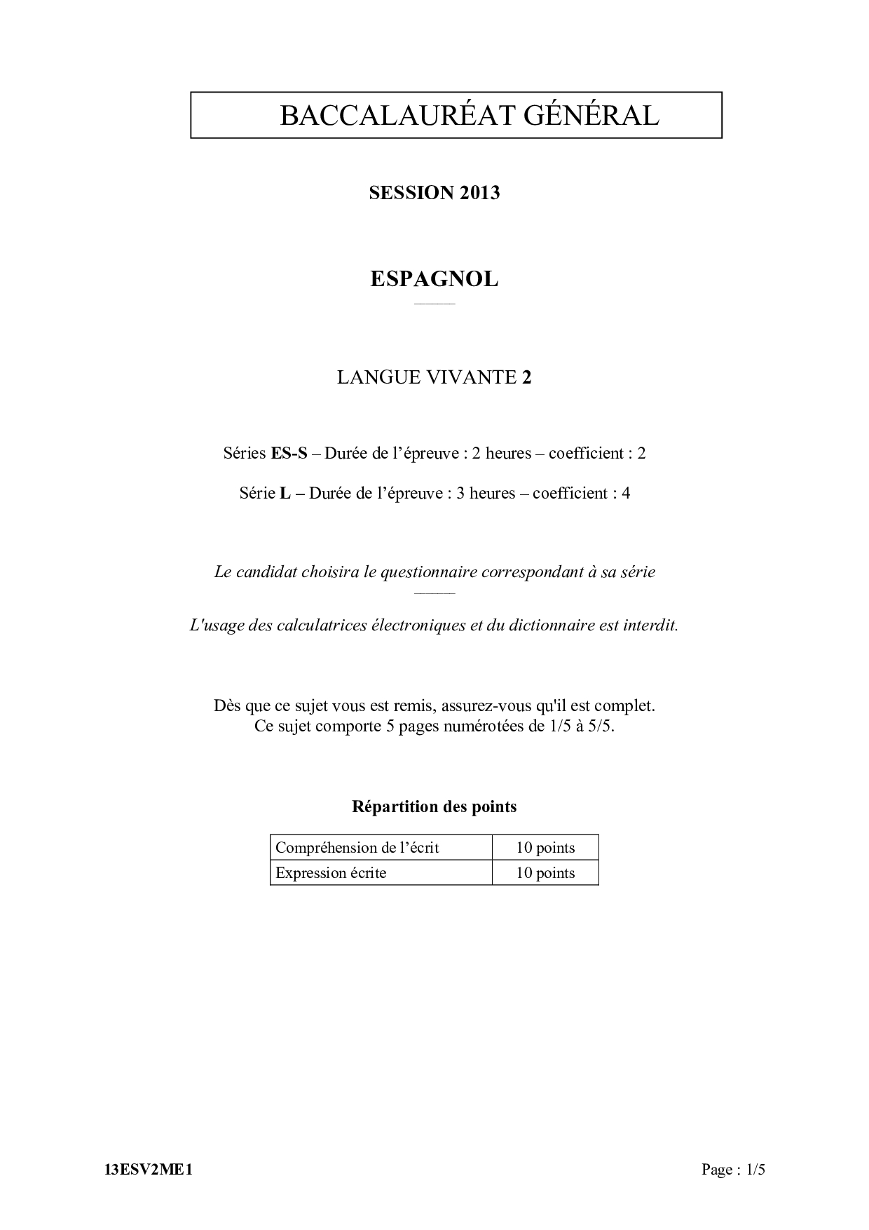 Bac S-ES-L Espagnol LV2 Métropole 2013 - Sujet