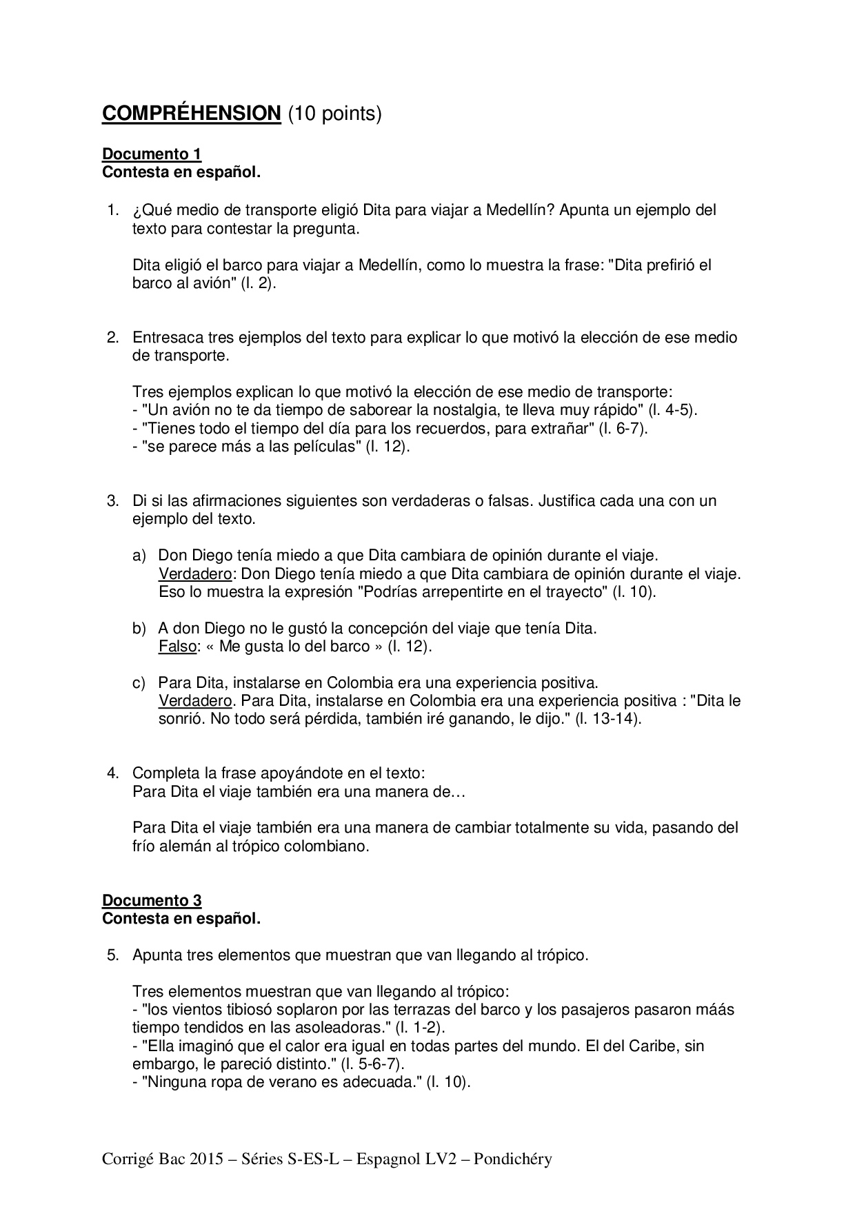 Bac S-ES-L Espagnol LV2 Pondichéry 2015 - Corrigé