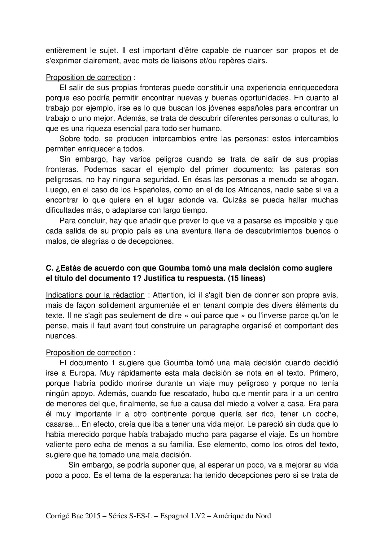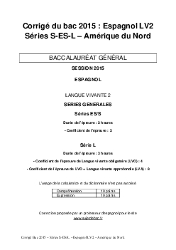 Bac S-ES-L Espagnol LV2 Amérique du Nord 2015 - Corrigé