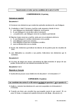 Bac S-ES-L Espagnol LV2 Amérique du Sud 2015 - Sujet