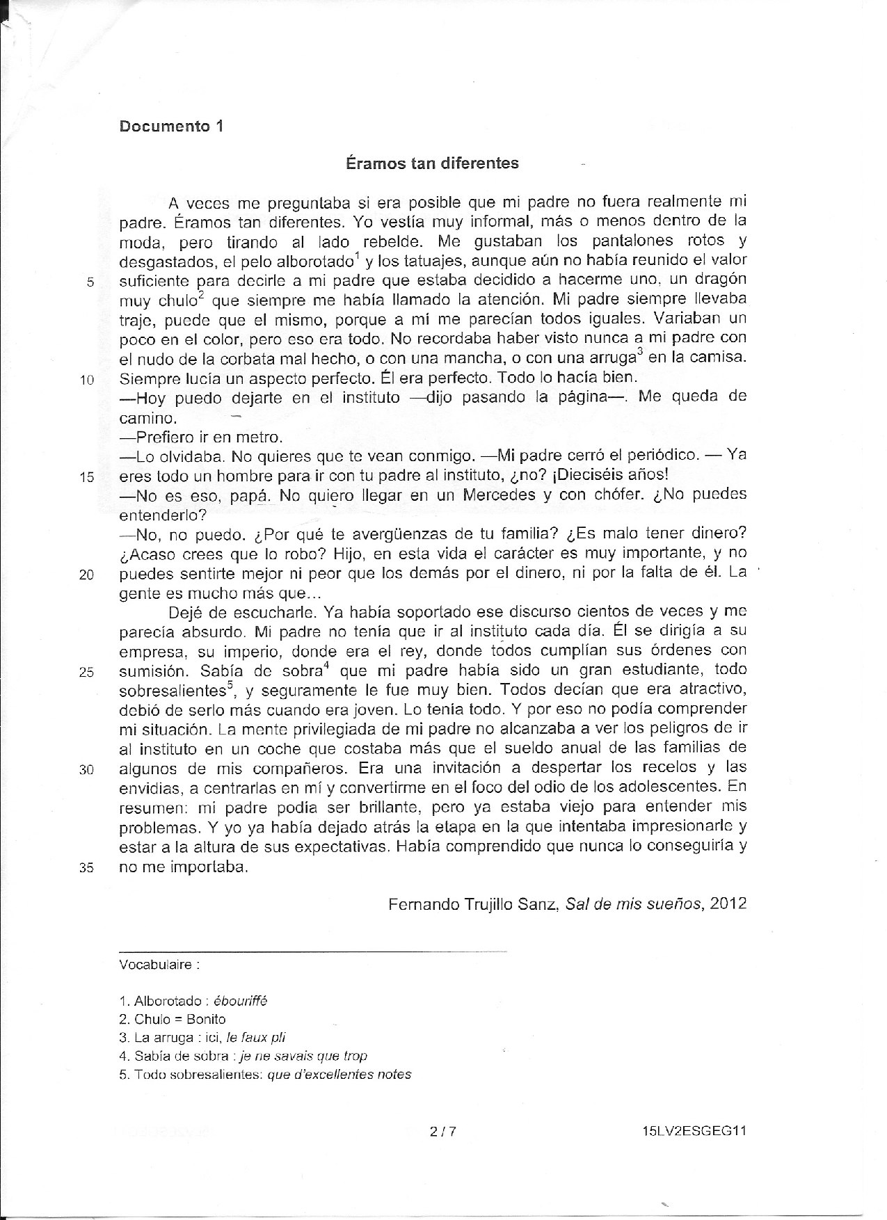 Bac S-ES-L Espagnol LV2 Centres Etrangers Afrique 2015 - Sujet