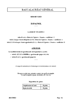 Bac S-ES-L Espagnol LV2 Métropole 2015 (Session de remplacement) - Sujet