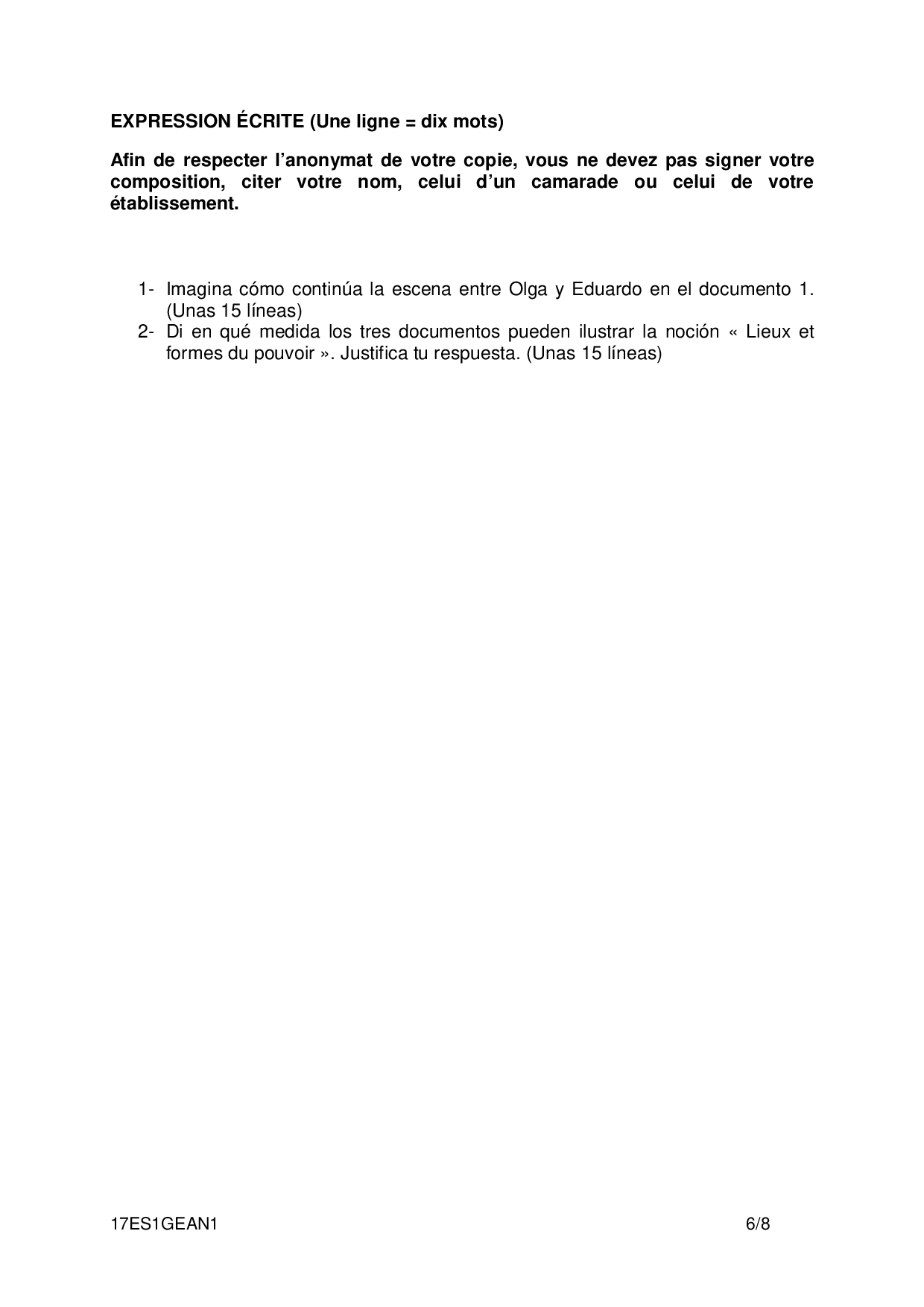 Bac S-ES-L Espagnol LV1 Amérique du Nord 2017 - Sujet