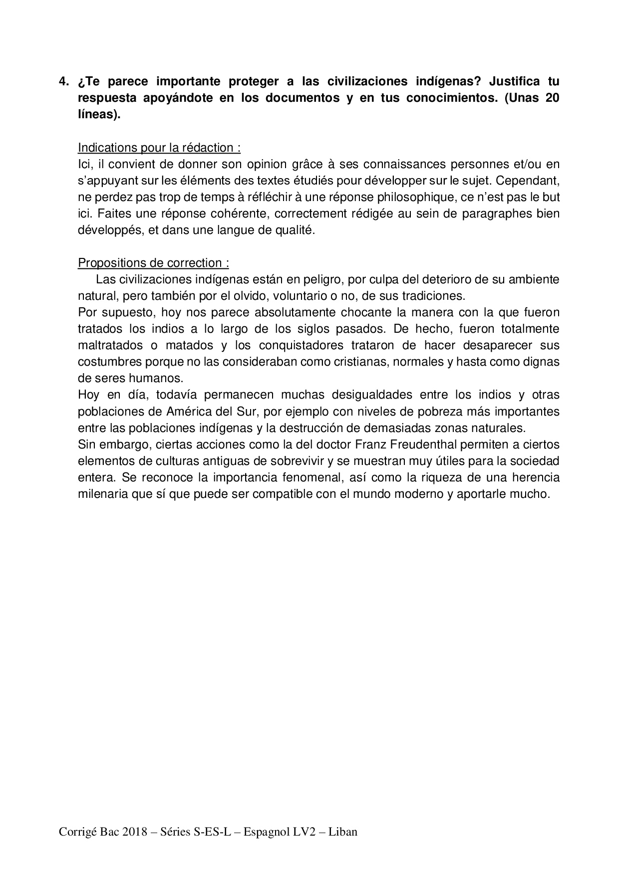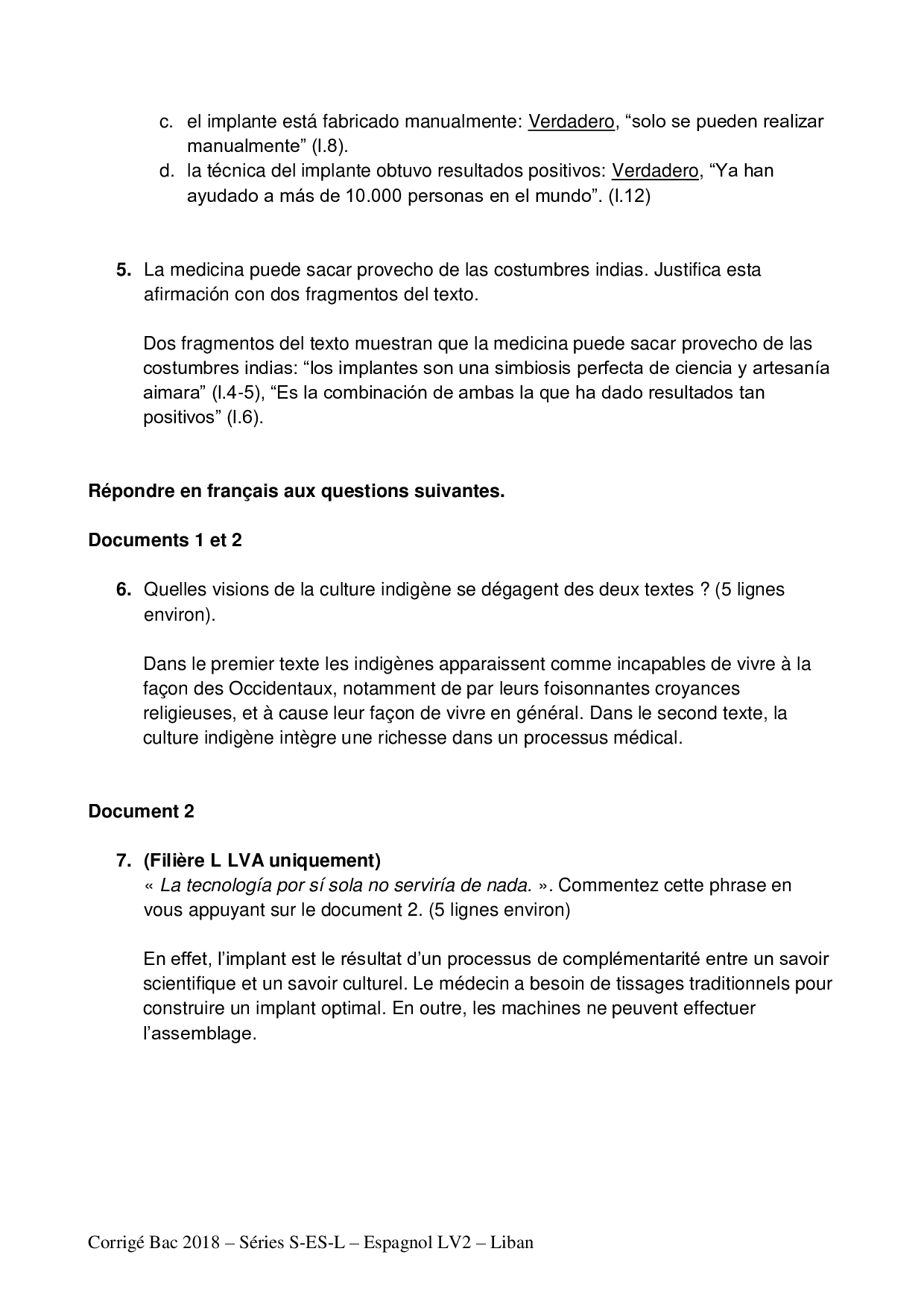 Bac S-ES-L Espagnol LV2 Liban 2018 - Corrigé
