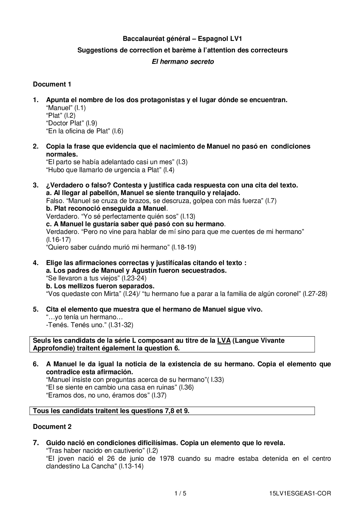 Bac S-ES-L Espagnol LV1 Amérique du Sud 2015 - Corrigé