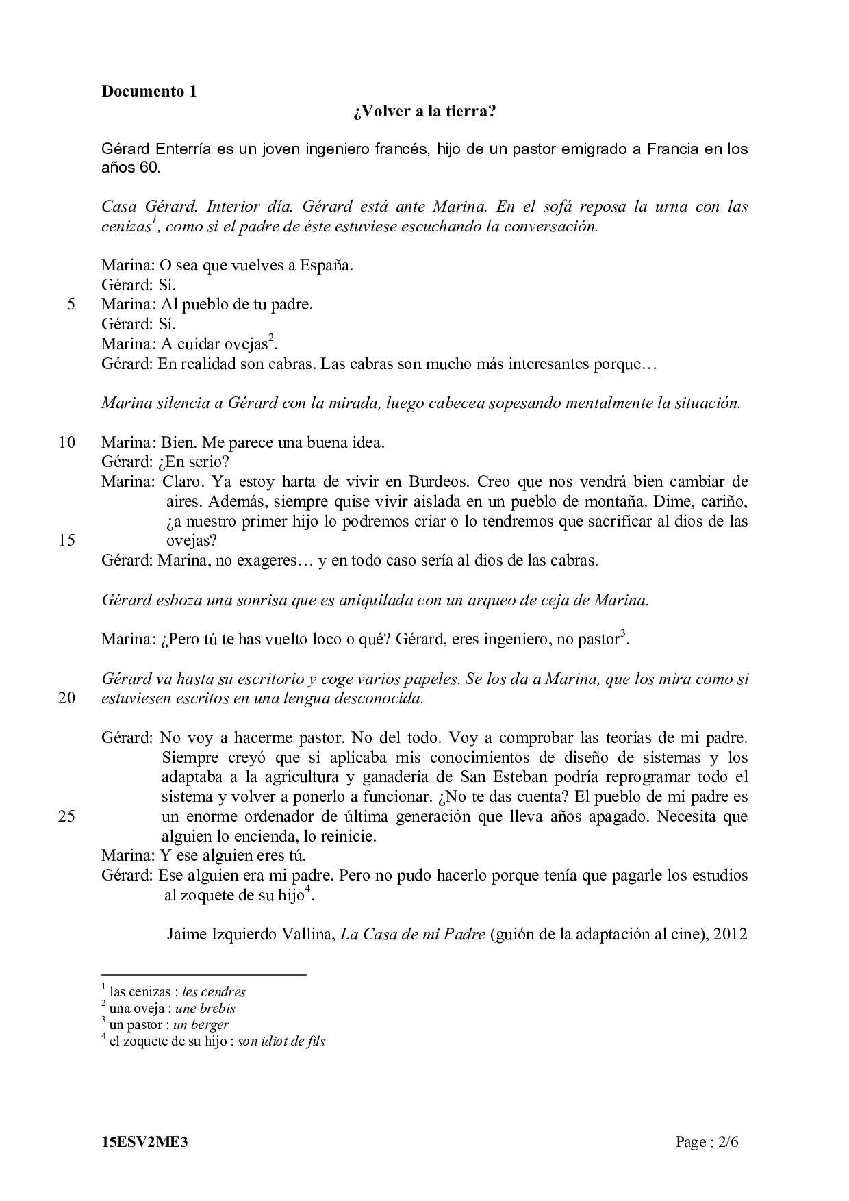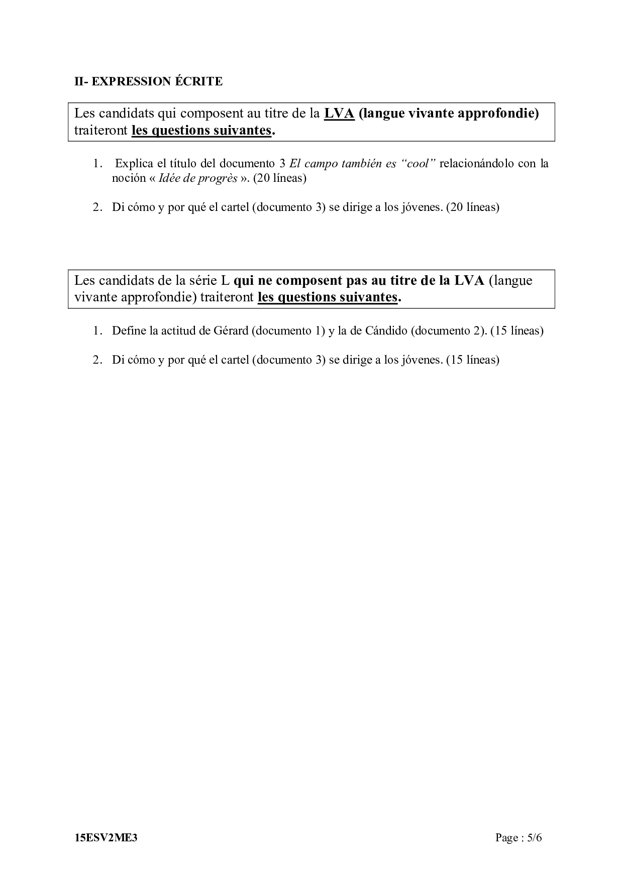 Bac S-ES-L Espagnol LV2 Métropole 2015 (Session de remplacement) - Sujet