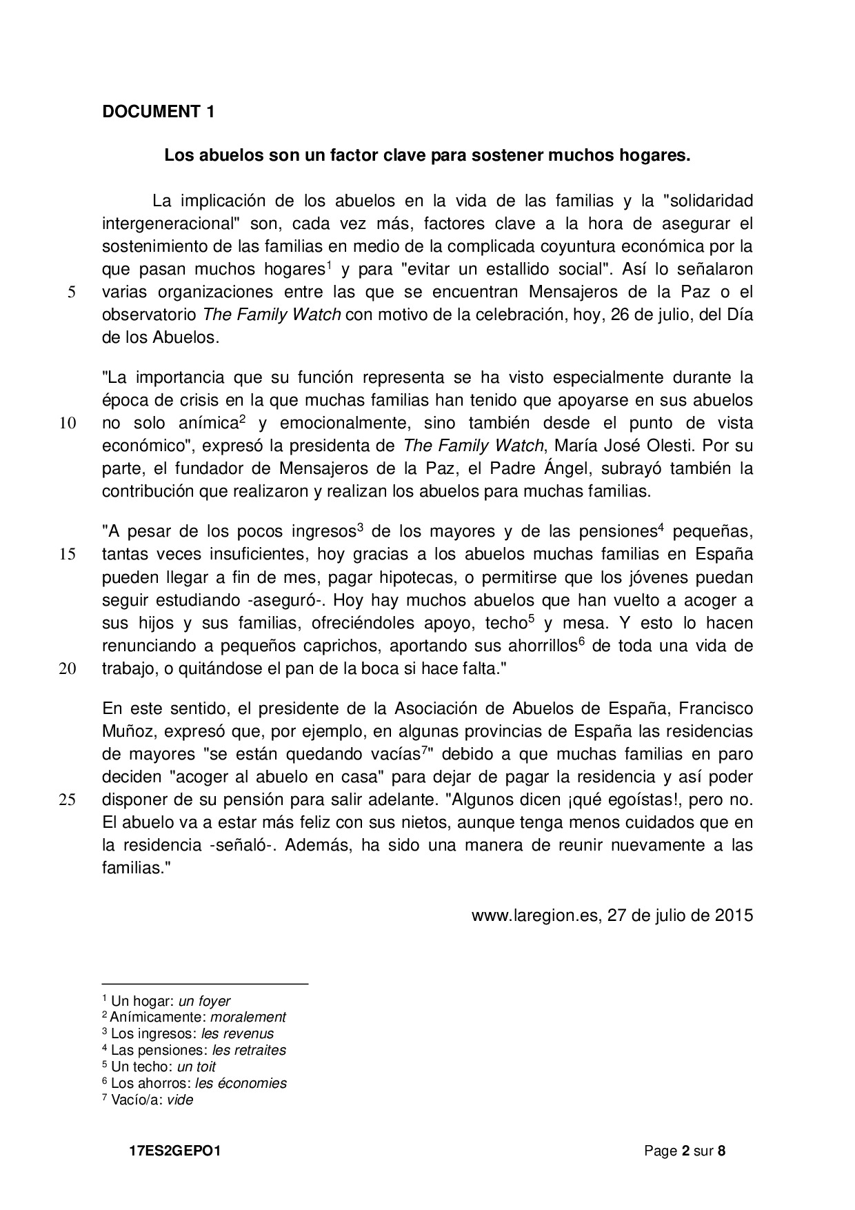 Bac S-ES-L Espagnol LV2 Polynésie 2017 - Sujet