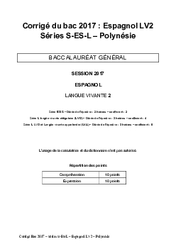 Bac S-ES-L Espagnol LV2 Polynésie 2017 - Corrigé