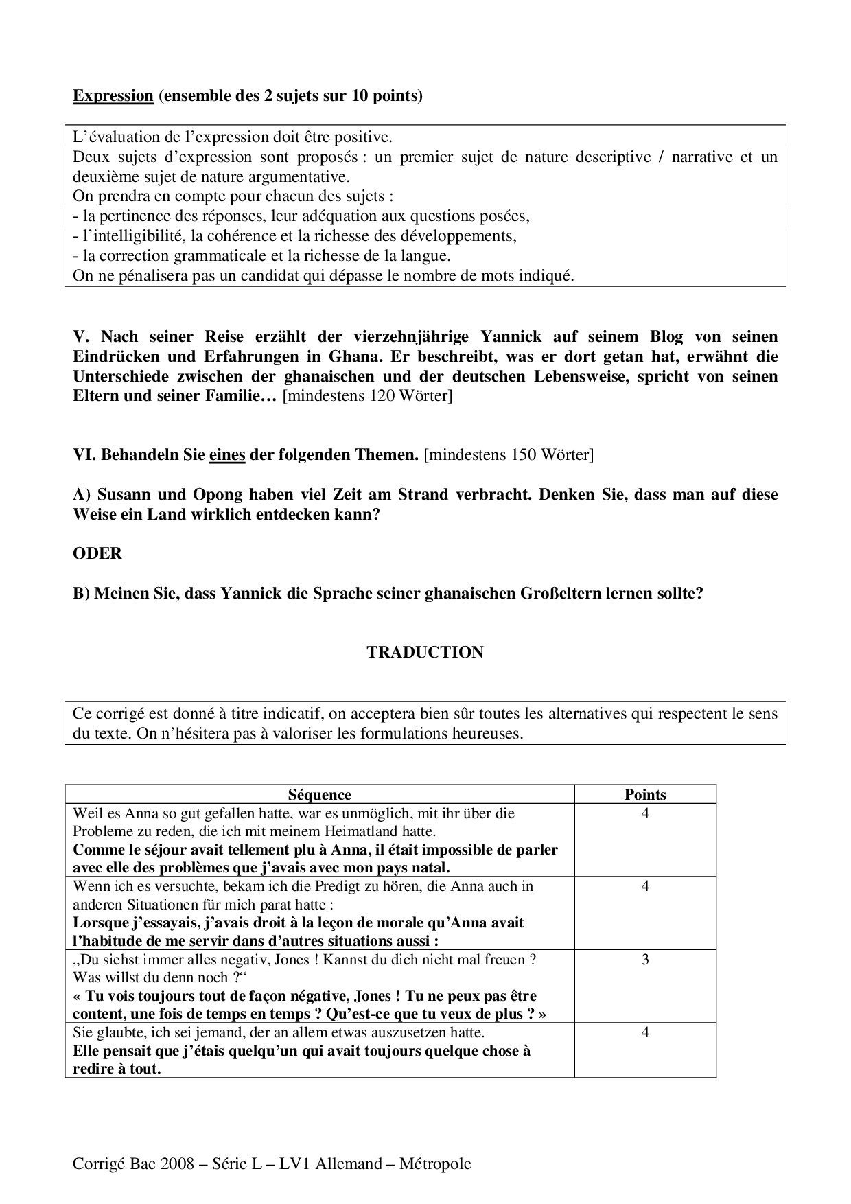 Bac L Espagnol LV1 Métropole 2008 - Corrigé