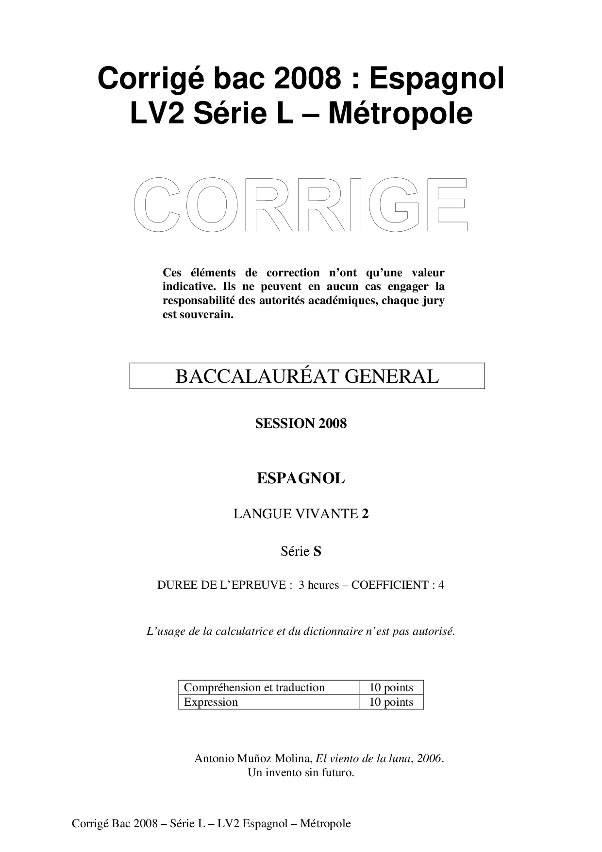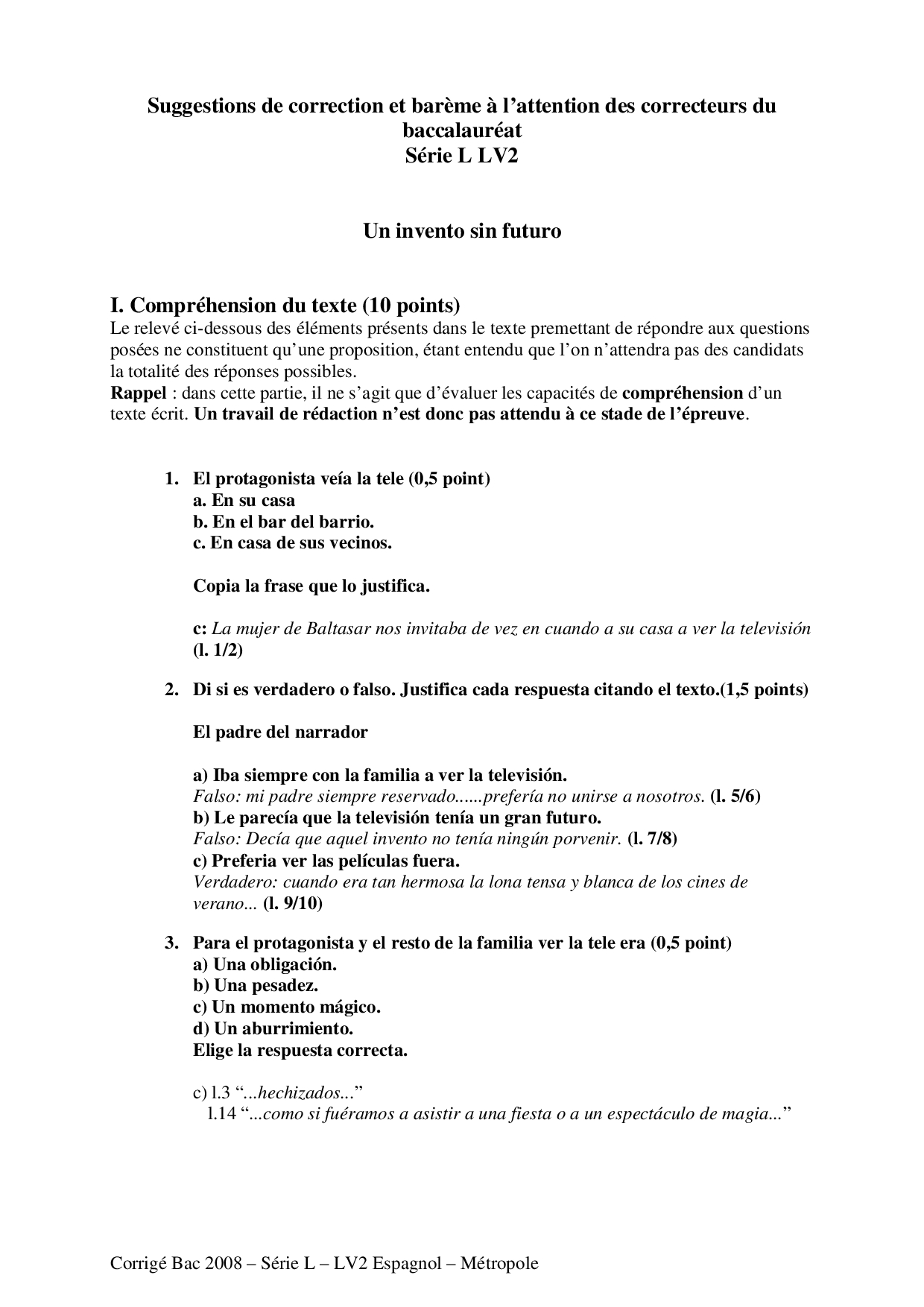 Bac L Espagnol LV2 Métropole 2008 - Corrigé