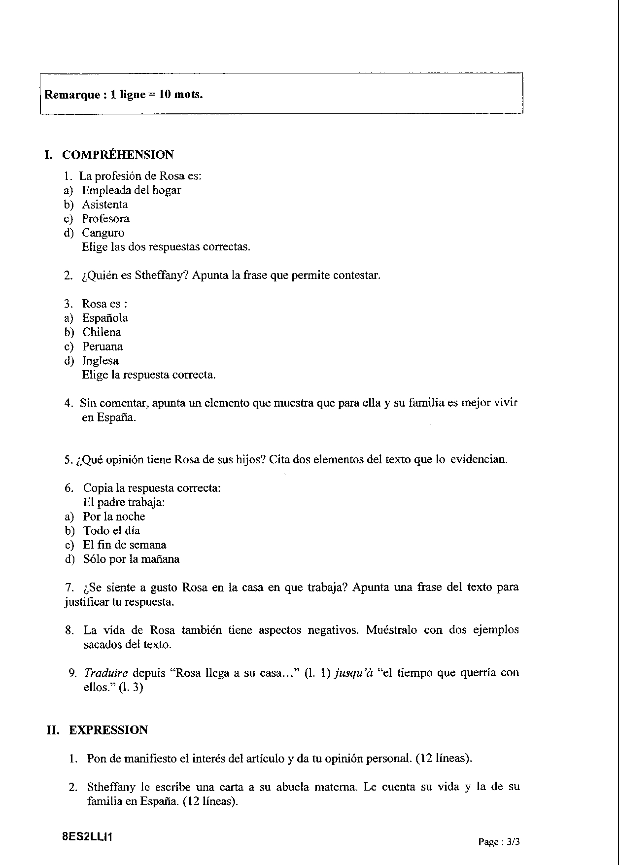 Bac L Espagnol LV2 Liban 2008 - Sujet