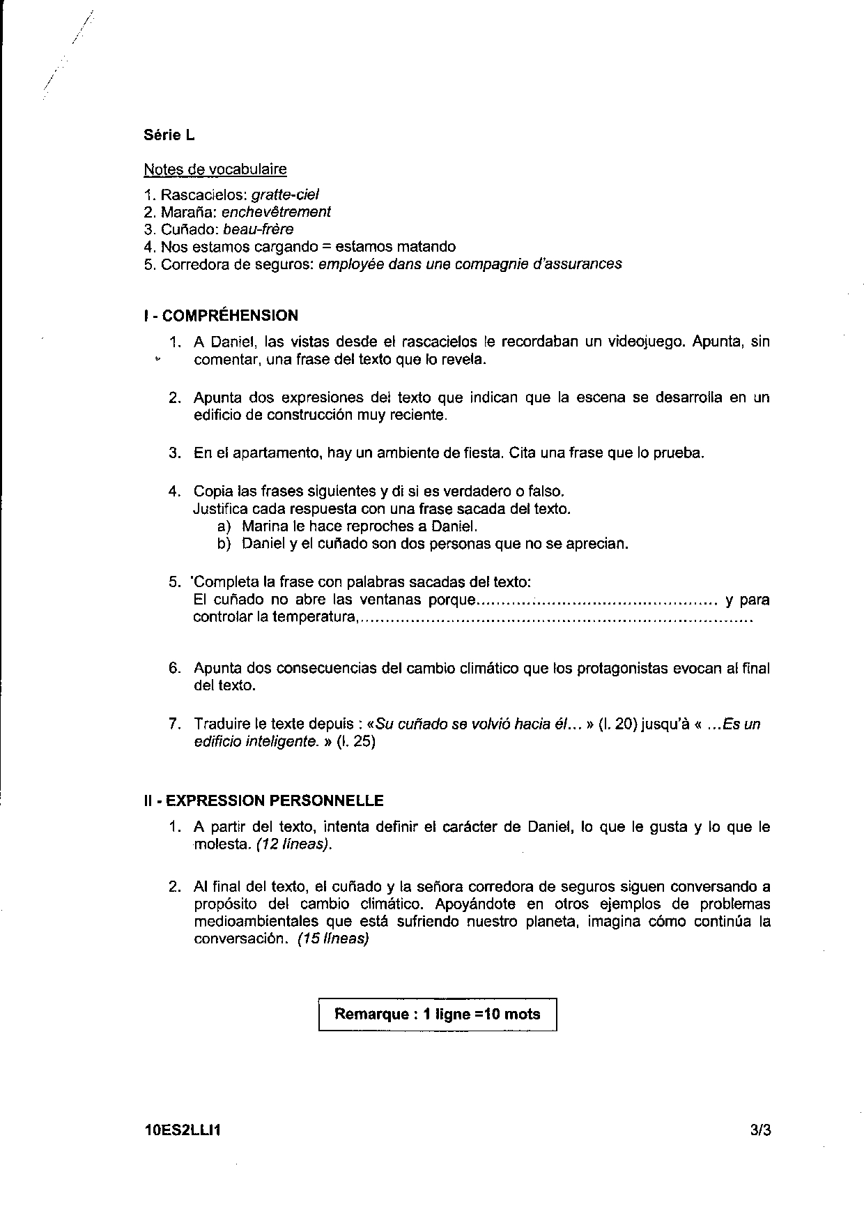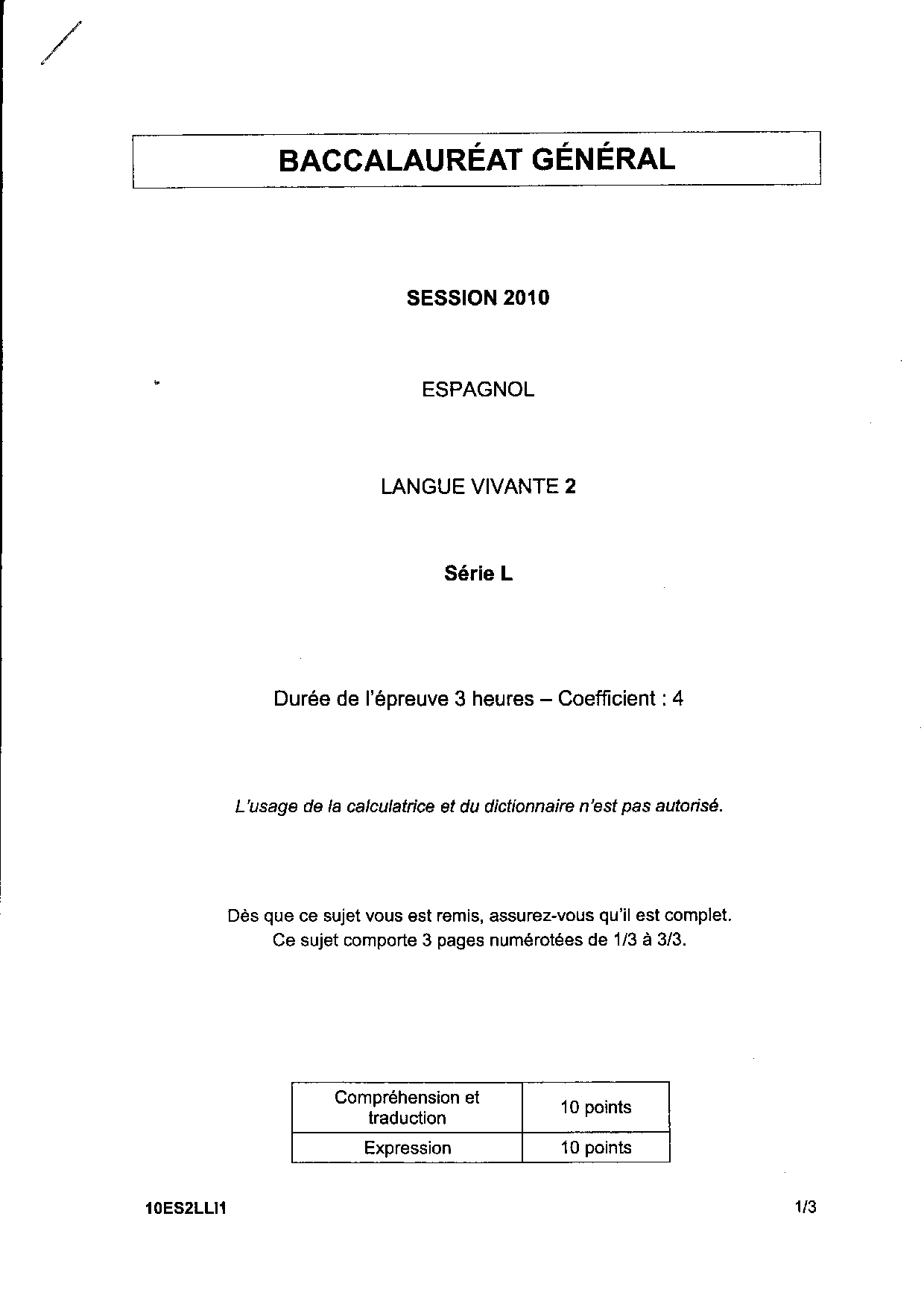 Bac L Espagnol LV2 Liban 2010 - Sujet