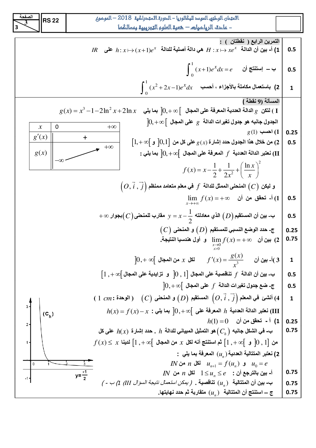 الرياضيات للشعب العلمية والتكنولوجية 2018 الدورة الإستدراكية - الموضوع