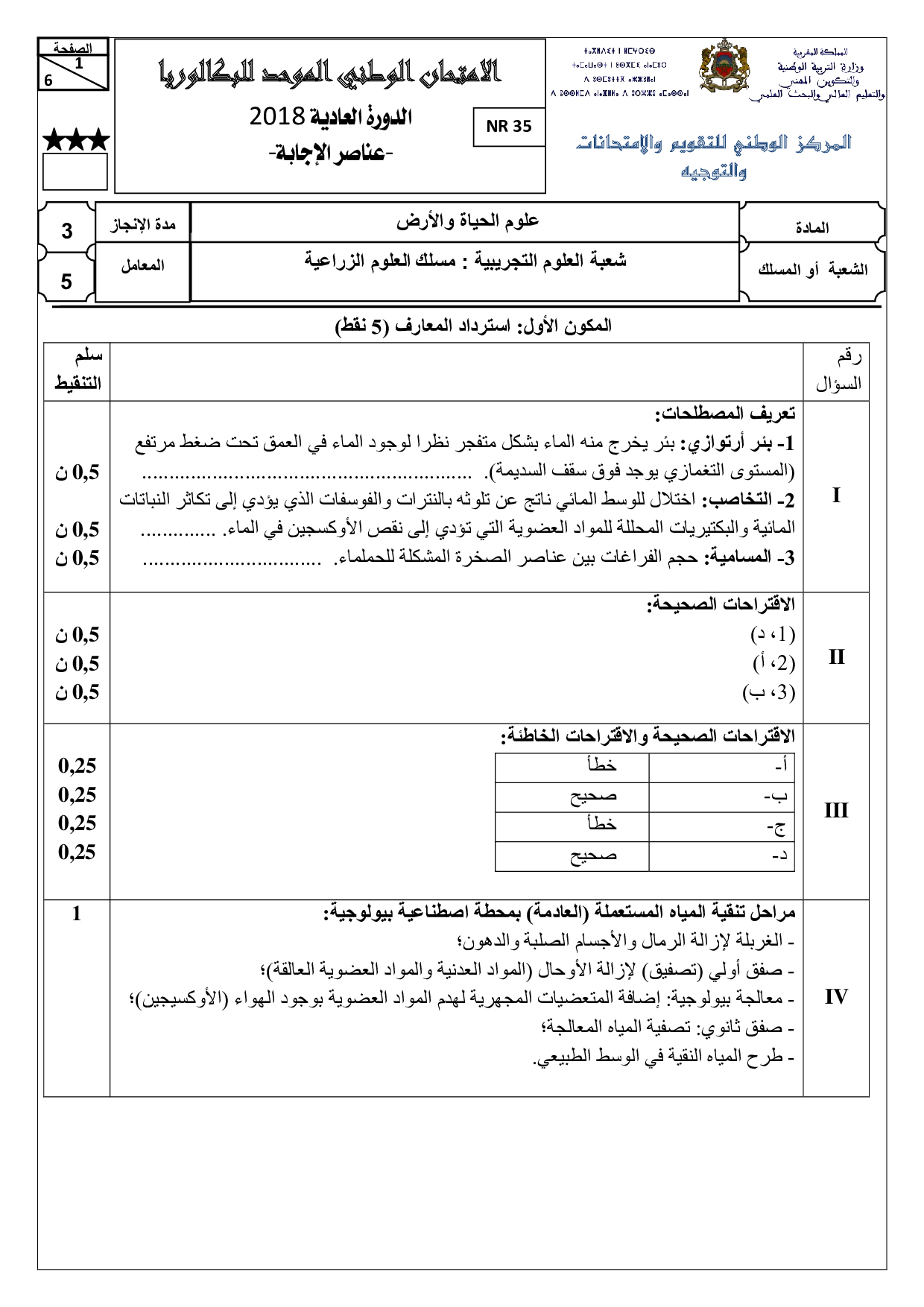 علوم الحياة والأرض (العلوم الزراعية) 2018 الدورة العادية - التصحيح