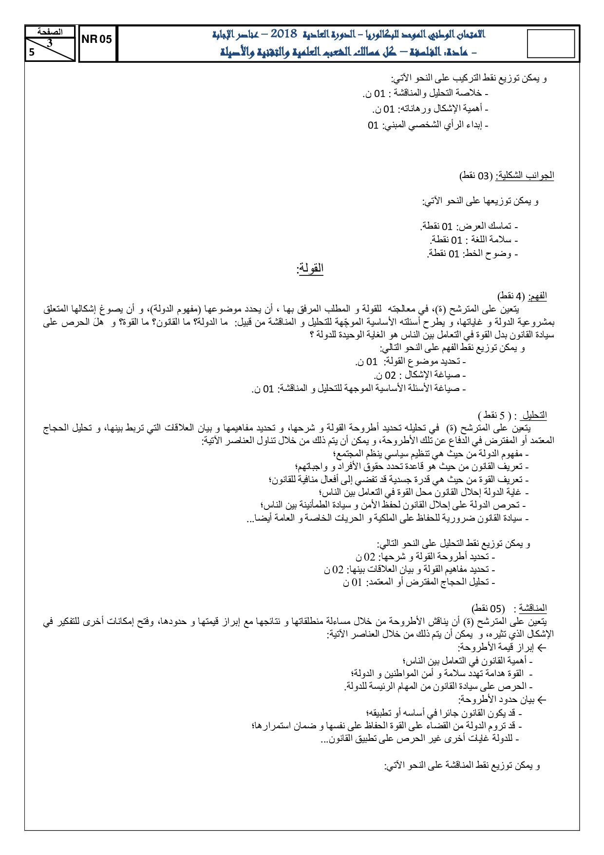الفلسفة للشعب العلمية والتقنية 2018 الدورة العادية - التصحيح