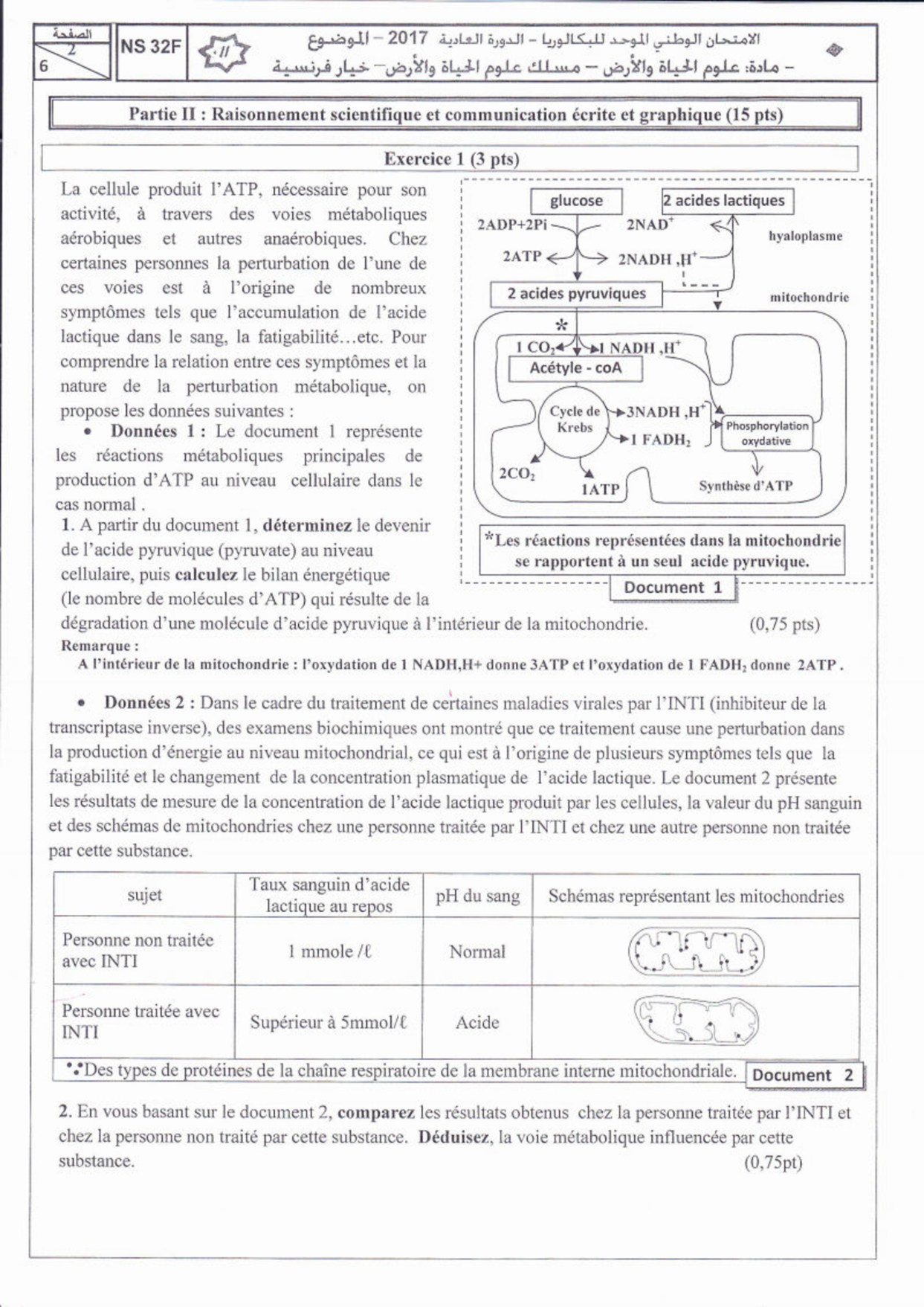 Examen National SVT 2ème BAC SVT 2017 Normale - Sujet