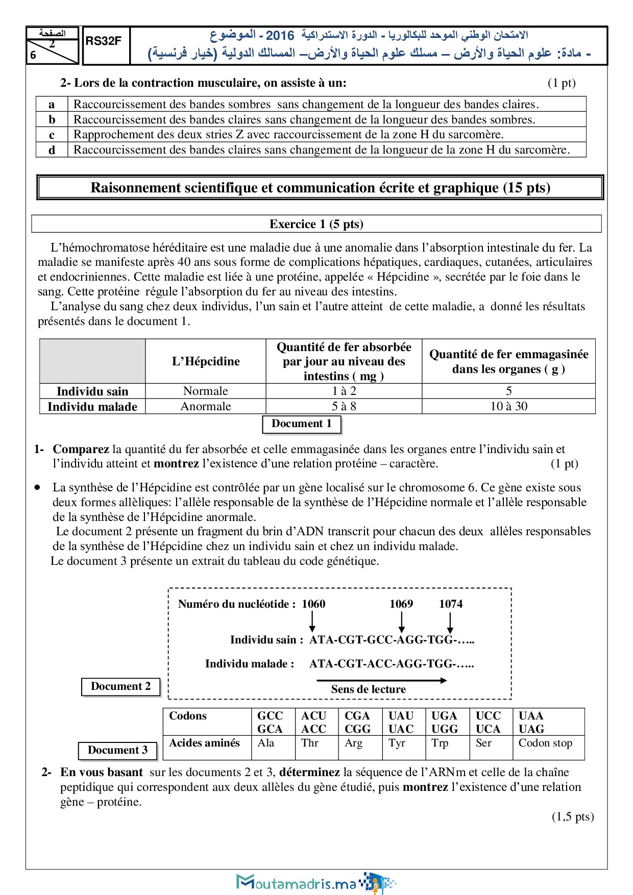 Examen National SVT 2ème BAC SVT 2016 Rattrapage - Sujet
