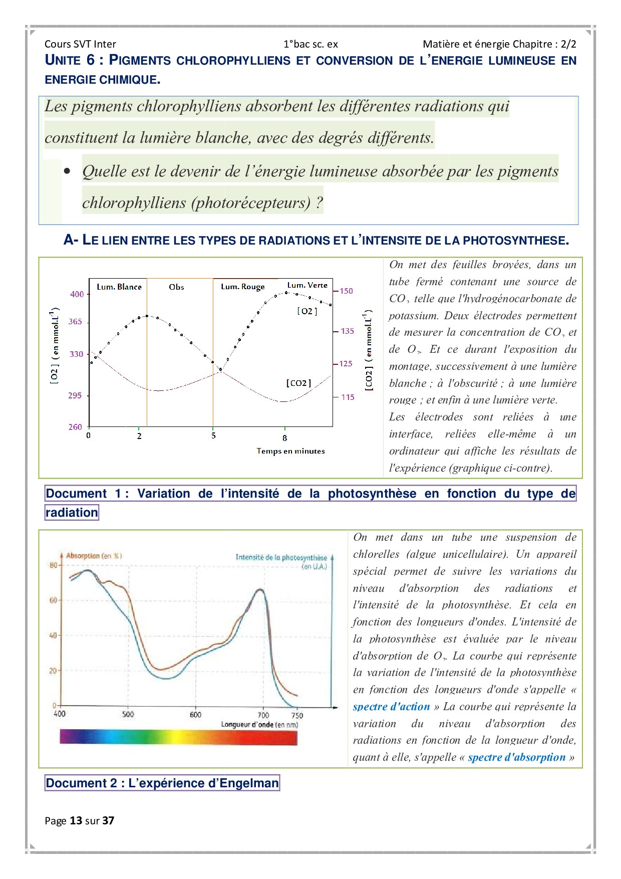 La captation de l’énergie lumineuse et les réactions de la photosynthèse - Cours