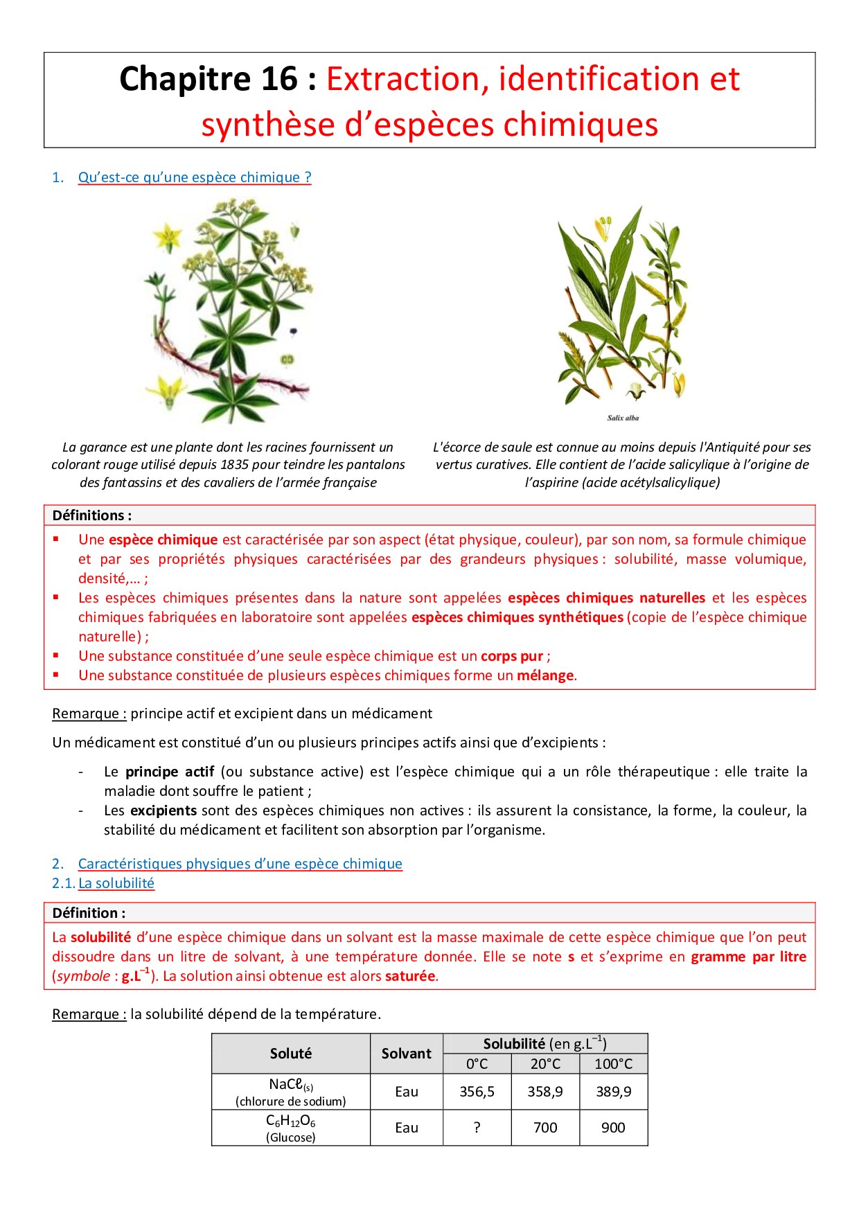 Extraction, identification et synthèse d’espèces chimiques - Cours