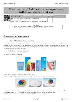 Mesure du pH de solutions aqueuses, influence de la dilution - Activités