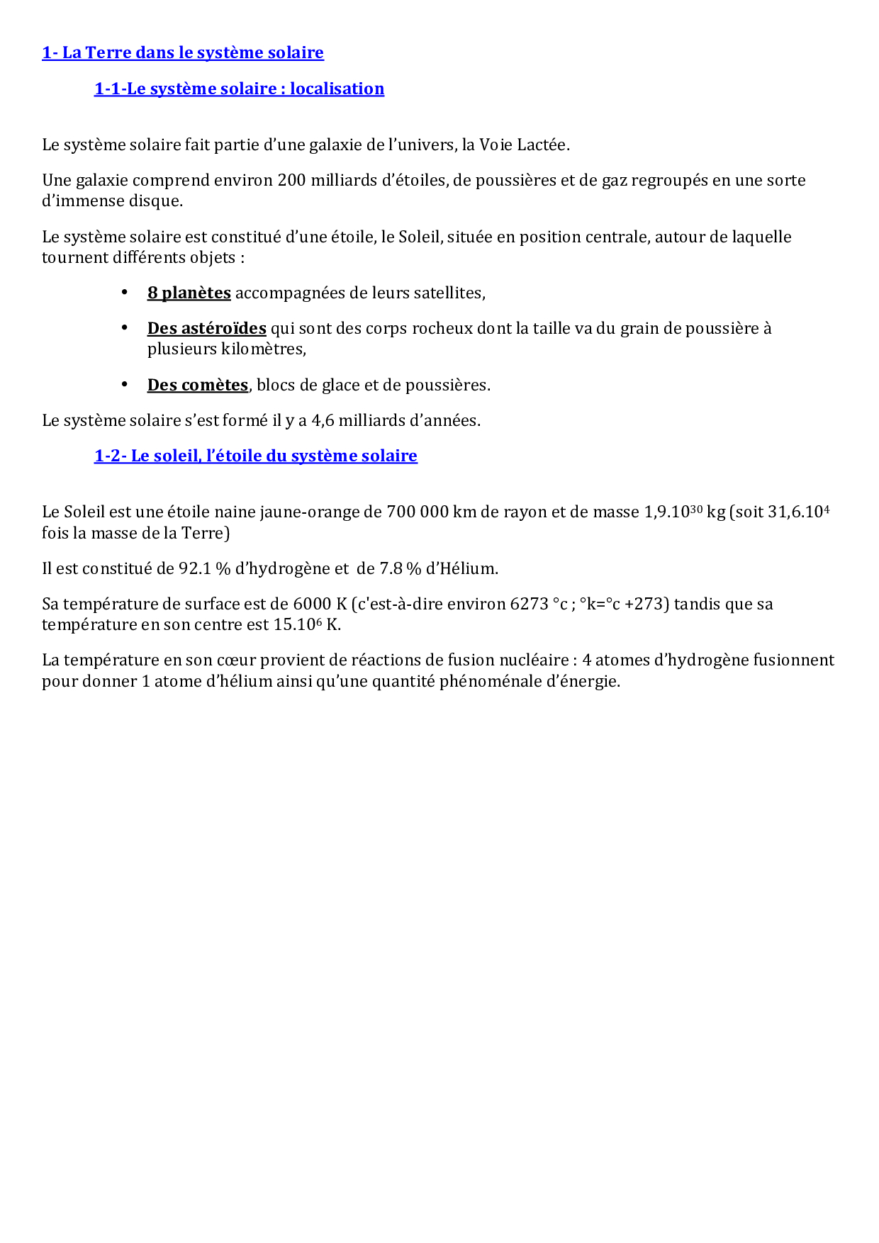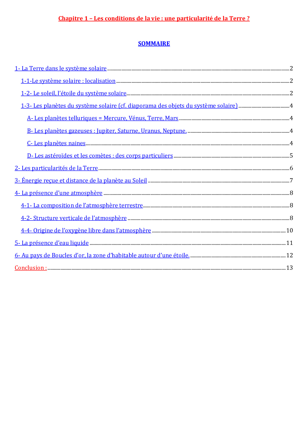Chapitre 1 - les conditions de la vie, une particularité de la Terre