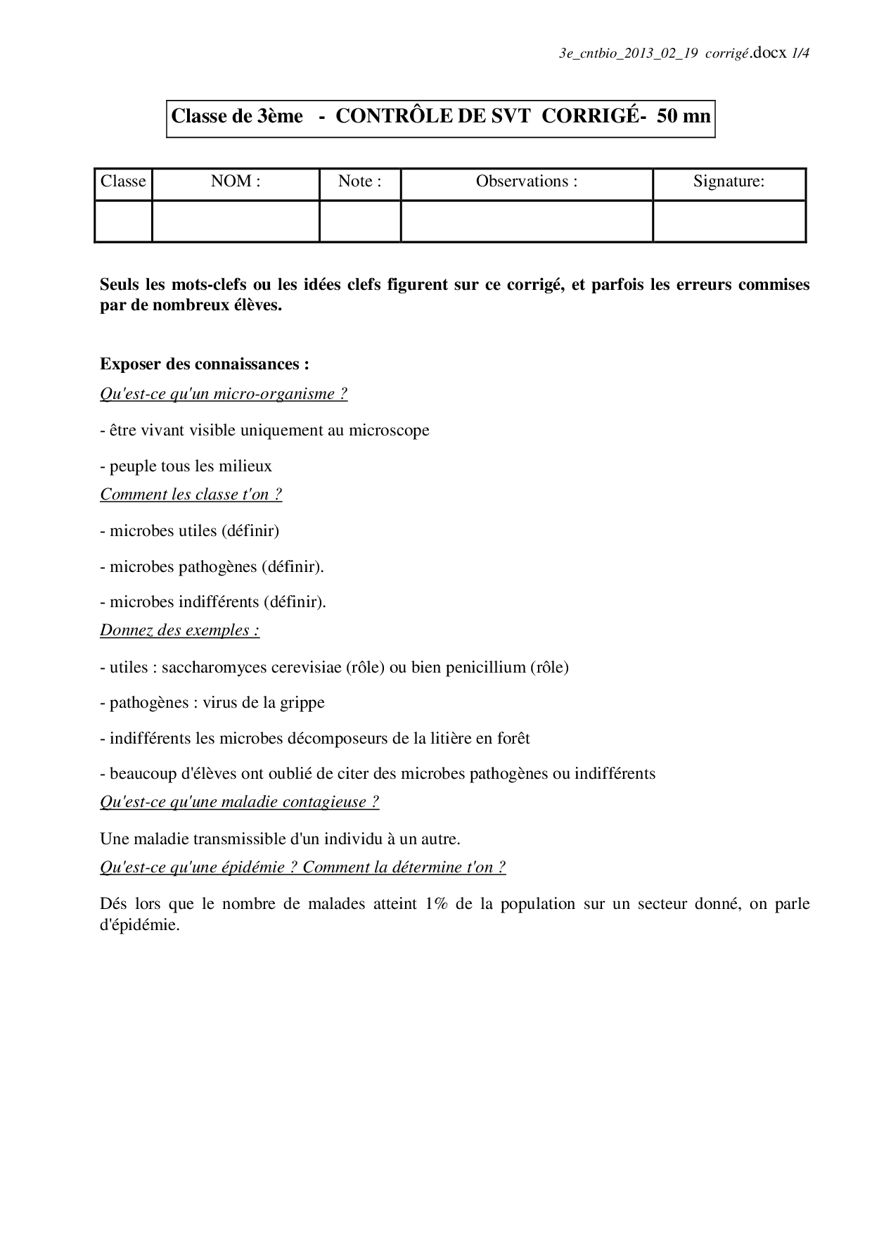 Sciences de la Vie et de la Terre (SVT): 3ème