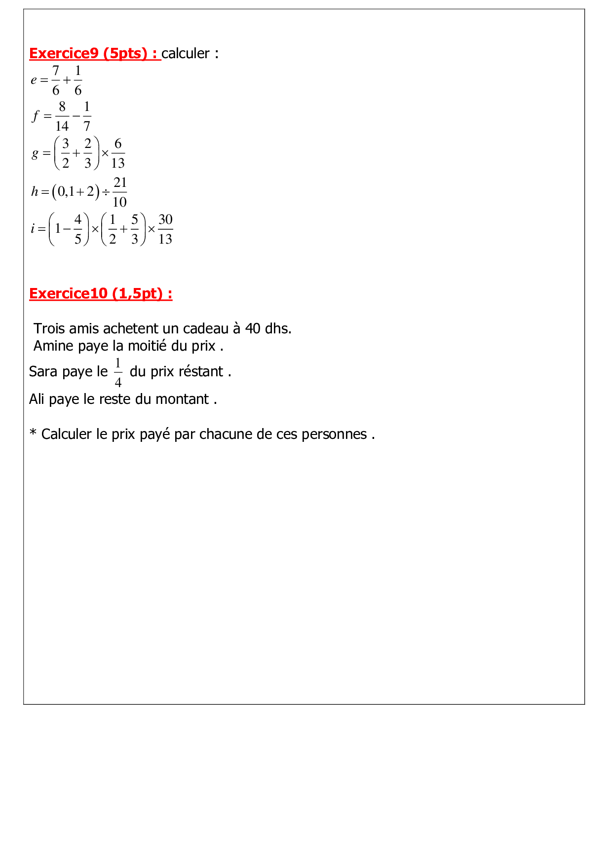 Mathématiques 1ère Année Collège