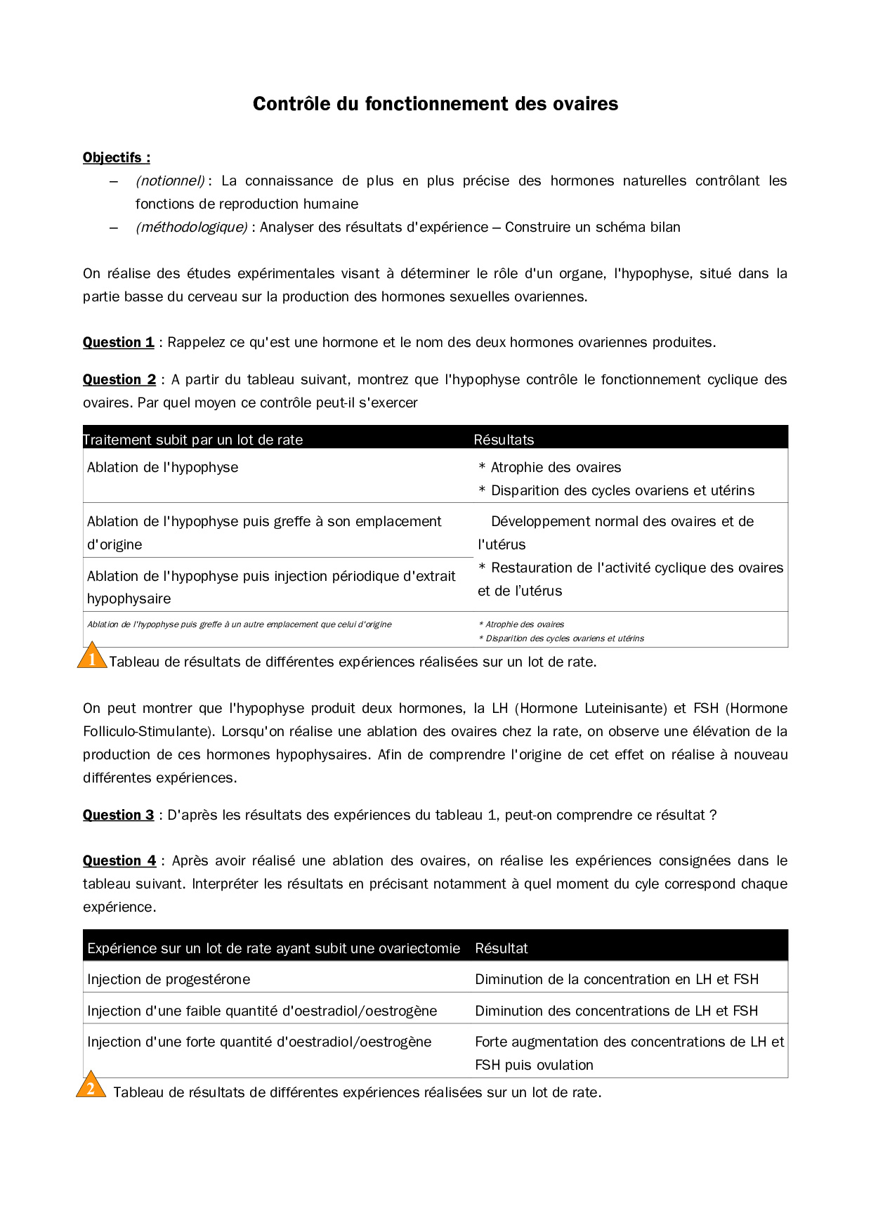 Masculin-Féminin - Activité 2 (Contrôle du fonctionnement des ovaires)