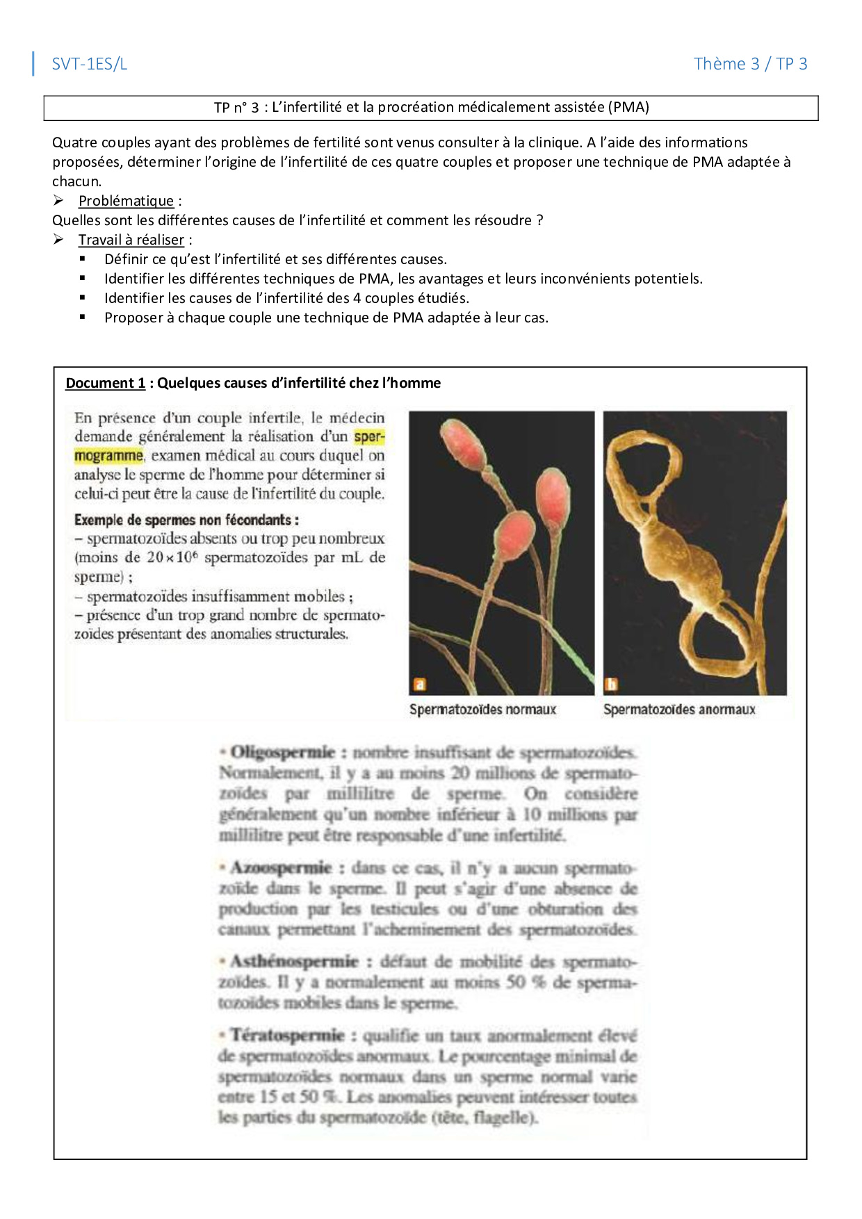 TP 3 - L'infertilité et la procréation médicalement assistée (PMA)