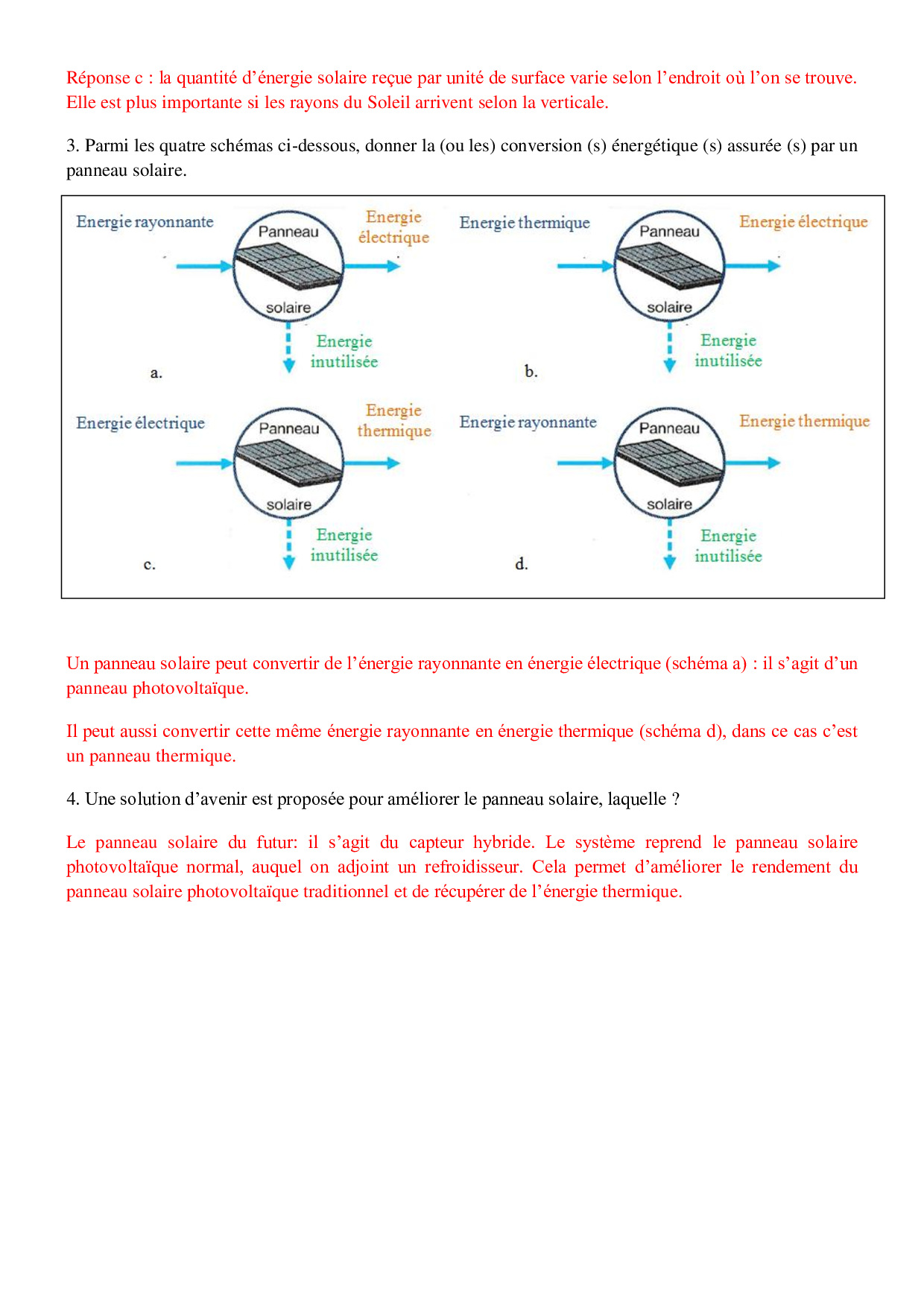 Energies renouvelables - Corrigés d'exercices
