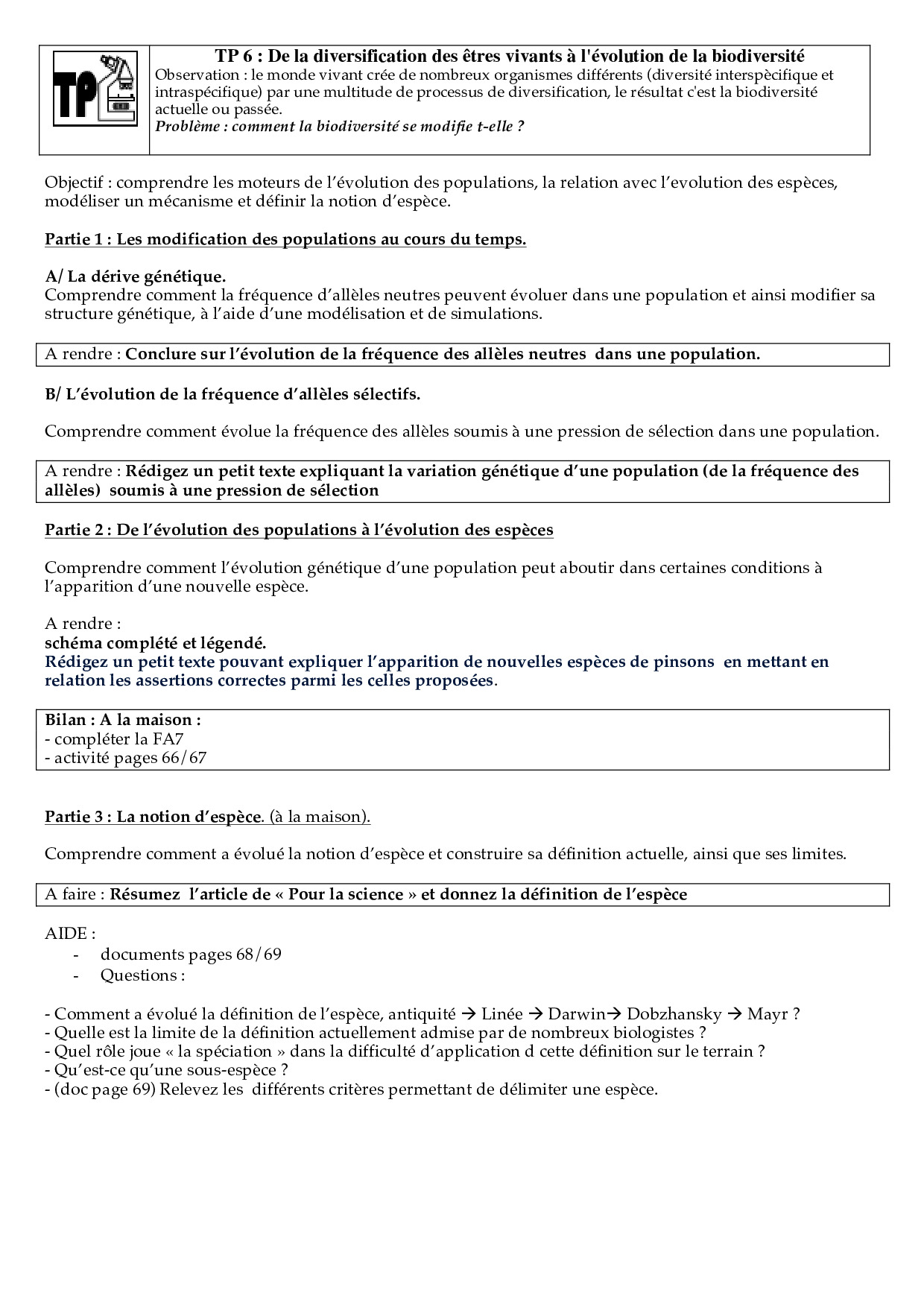 TP - De la diversification des êtres vivants à l'évolution de la biodiversité
